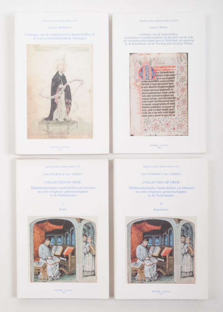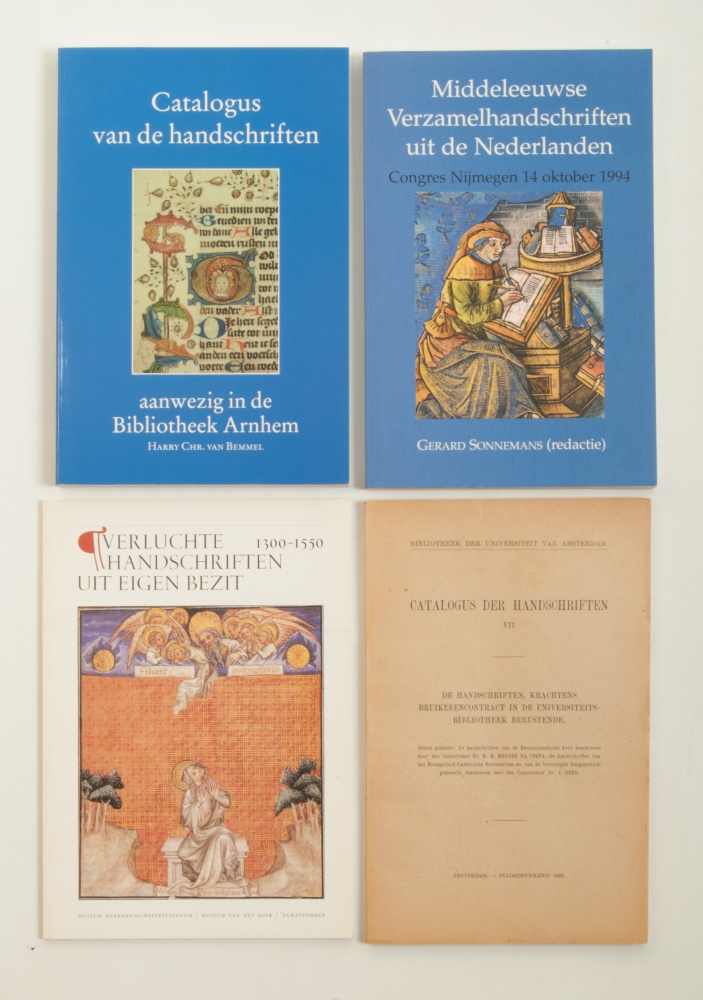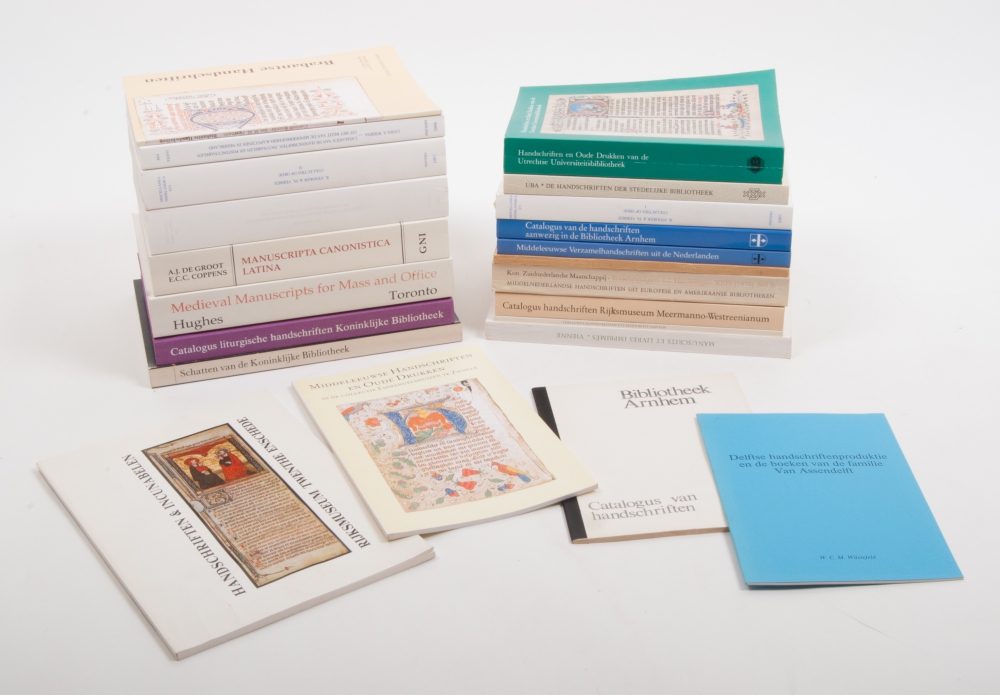 Catalogus van de liturgische handschriften van de Koninklijke Bibliotheek, 1988. Handschriften en Oude Drukken van de Utrechtse Universiteitsbibliotheek, 1984. Manuscripta Canonistica Latina, Nijmegen, 1989. Medieval manuscripts for mass and office, Andrew Hughes, Toronto, 1995. 4 vols. from the Miscellanea Neerlandica on Medieval religious manuscripts and 14 others, all concerning manuscripts from city or university collections.