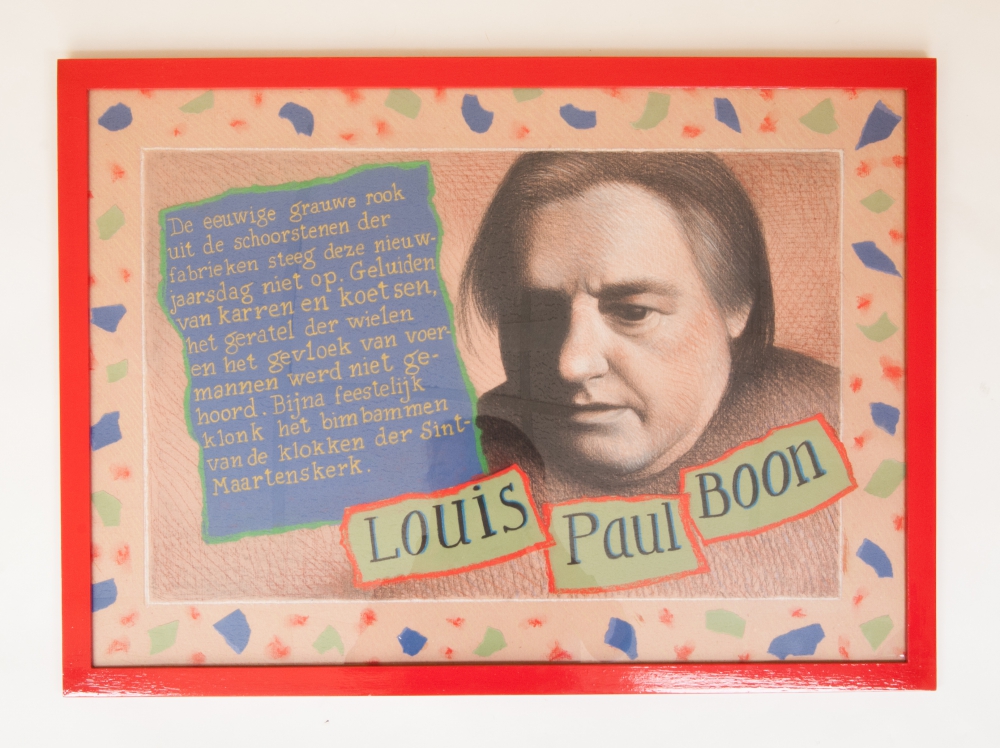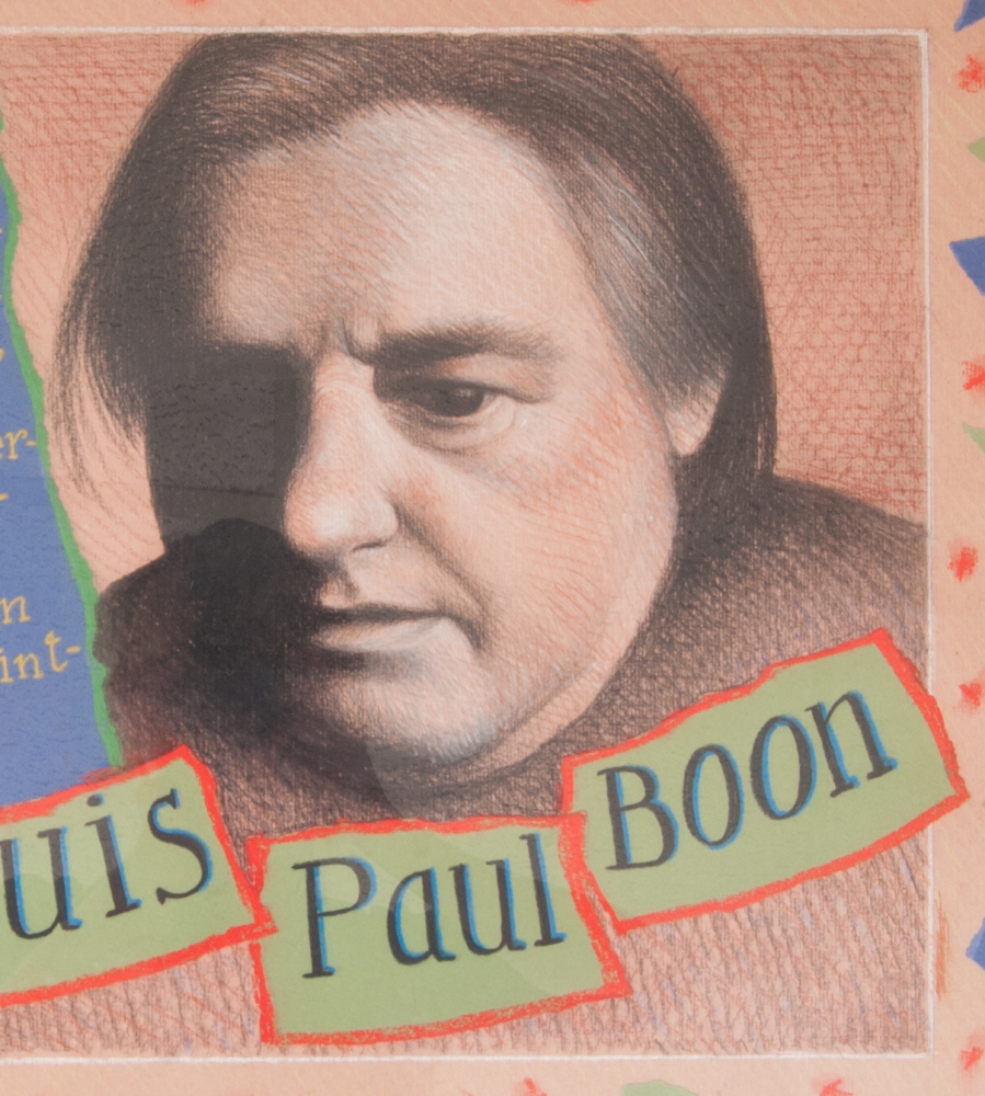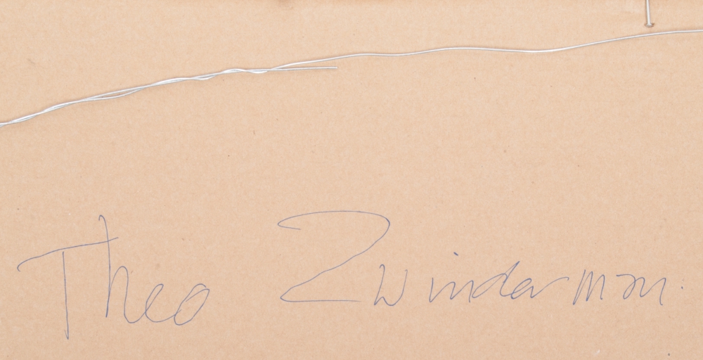 Theo Zwinderman. Mixed technique, incl. paint, coloured pencil and paper scrap. ca. 1995. 68 x 49 cm. Framed.