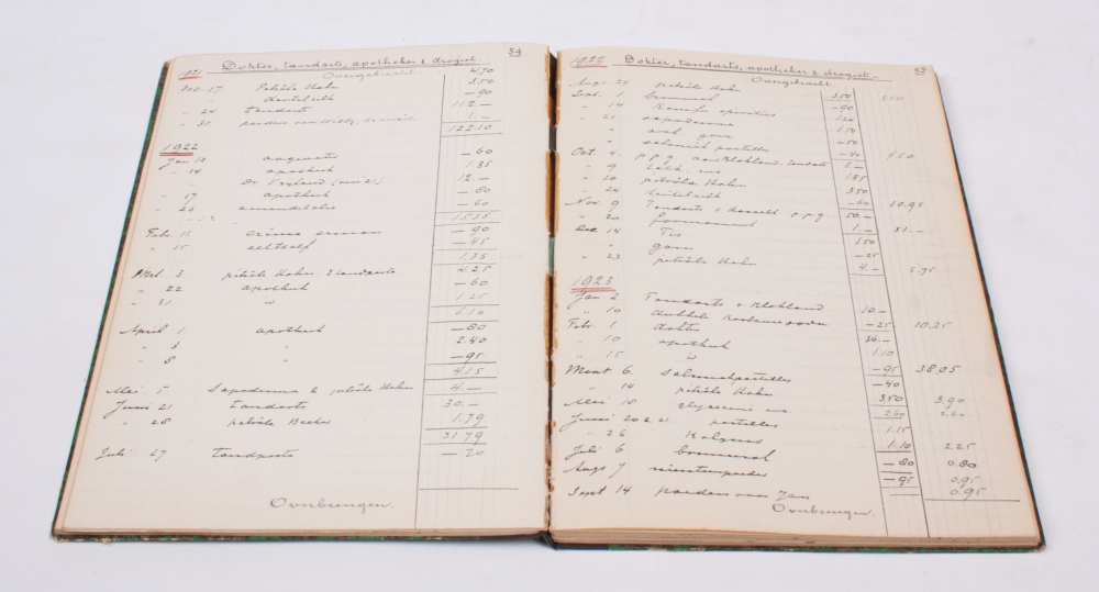 ca. 1900-1950 (mostly '20s and '30s), consisting of hundreds of letters, 20 photos, marriage certificates and wedding cards, birth announcements, a friend book, legal documents, two housekeeping books and a typoscript.