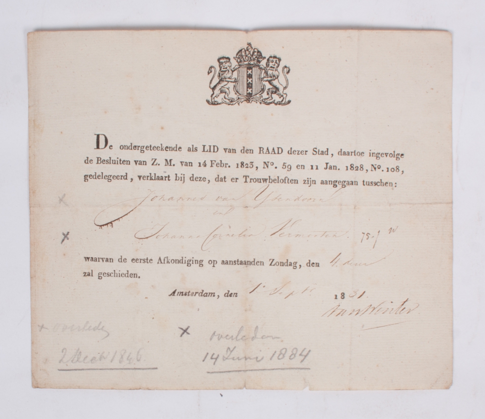 And with: Naam-register van al de predikanten die t'sedert de Reformatie in den jare 1578 tot heden geweest of noch zijn (...). Amsterdam, J. Schouten, n.d. (ca. 1790), 40 p., without cover, 12mo and with another 14 various others, mostly 19th-century extracts from municipal registers.