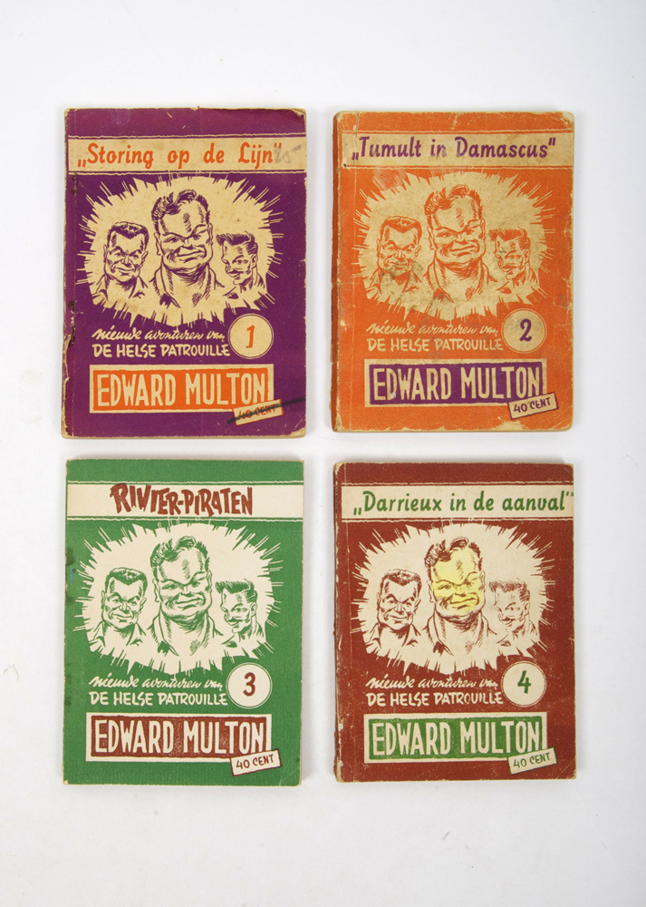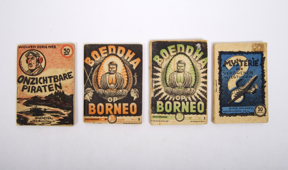 Frikke Julsing/Herman van der Voort, van Kersten, 1949. Vol. 1-4. Vol. 1 name inside, sm. tear in spine; vol. 2 chip from back, soiled copy, vol. 3 good condition; vol. 4 name inside, else neat + De Slag om Arnhem! Beeldfilm in 300 flitsen! P. Veldheer H.A.T.E., Rotterdam, 1946 + De Wolvenreeks no. 1-3 (no. 2 poor) + Wolvenserie nos. 3-6 - and 1 other.
