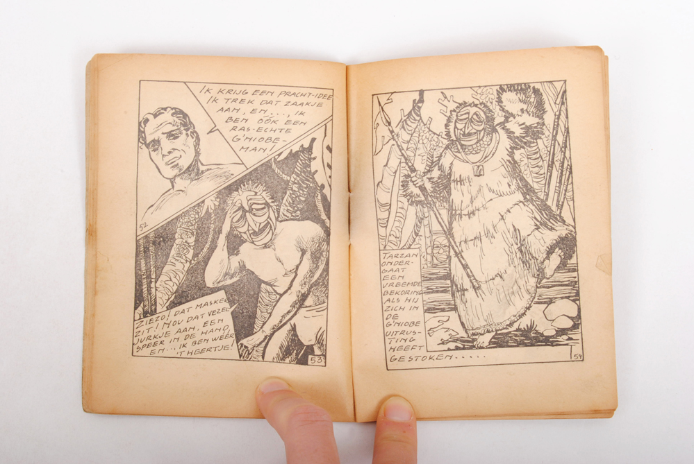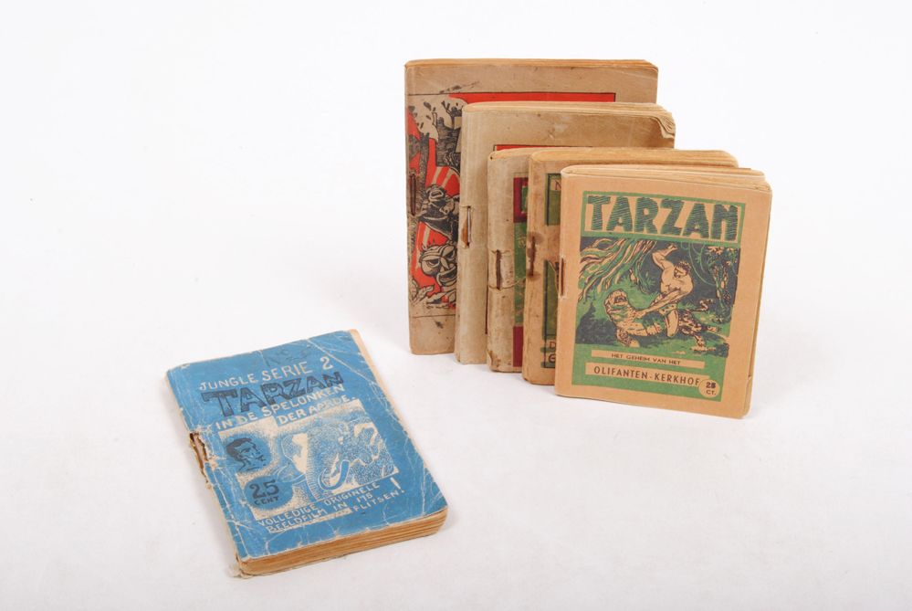 Nico Draak. 1st series, vol. 1, 2, 4, 5, and 7, H.A.T.E., 1947. Stapled, small size, 62 pp. Copies with signs of use as some foxing around staples, here and there a wrinkle. Vol. 2 with copied cover - and series 2: Jungleserie 2. Tarzan in de spelonken der aarde. 1949. Poor copy.