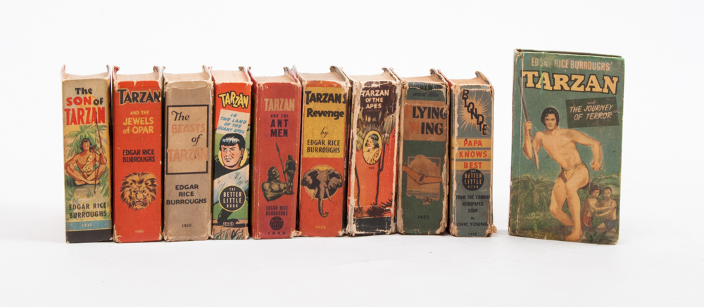 Tarzan of the Apes, The Big little cartoon Book, Whitman Publishing Company, Racine, USA, 1933. 316 pp. Sl. worn along corners, else good + 7 other Tarzan vols. from the series - and 5 others, incl. Andy Panda and Blondie.