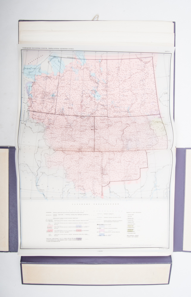 2 portfolios (59 x 41 cm.) in blue and green cloth resp., atlas vols. only, no text vol., title, index, 113 and 98 maps, folded and loose in portfolio as published; library stamps and var. paper stickers. Expansive work. A third volume, Syntax, not included here, was published in 1996.