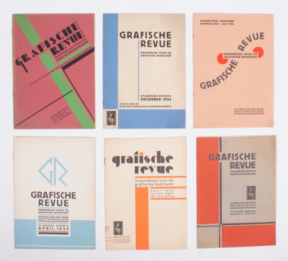No. 7 to 13, 1935-1951. Several issues sl. dam. (sm. tear in cover nos. 7, 12 and 13). Else good with many supplements - added ca. 70 copies of Grafische Revue, Maandblad voor de Grafische vakken, ca. 1930-1934 - and Grafische Mededeelingen.