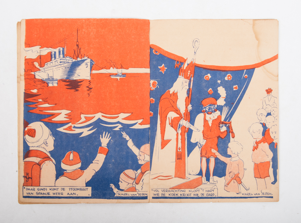 Paulus en de Hulpsinterklaas. Verteld en getekend door Jean Dulieu. Amsterdam, de Arbeiderspers, first ed., 1952. 67 pp. Top spine ca. 1 cm rest., else fine copy + Sint Nikolaas. Twaalf versjes met melodieën door Kath. Leopold. Second ed., Firma I. Oppenheim, Groningen, 1903 + Sint-Nicolaas. Artist and author unkn., ca. 1930, 6 pp. Trifle stained.