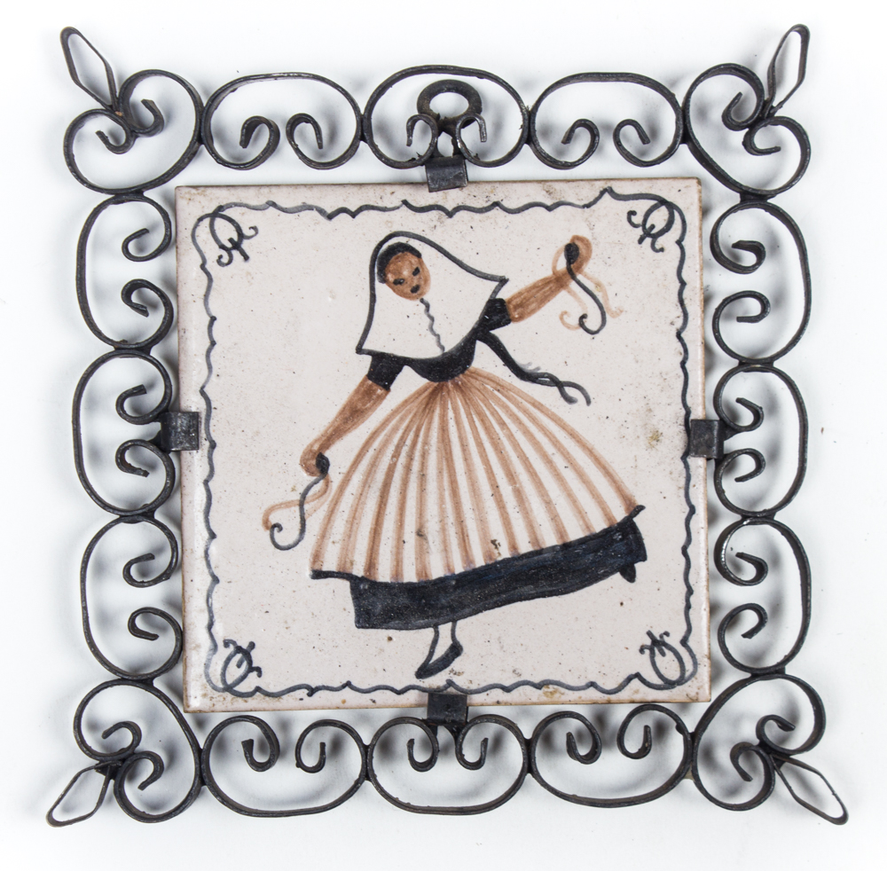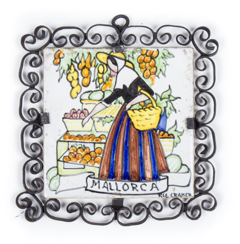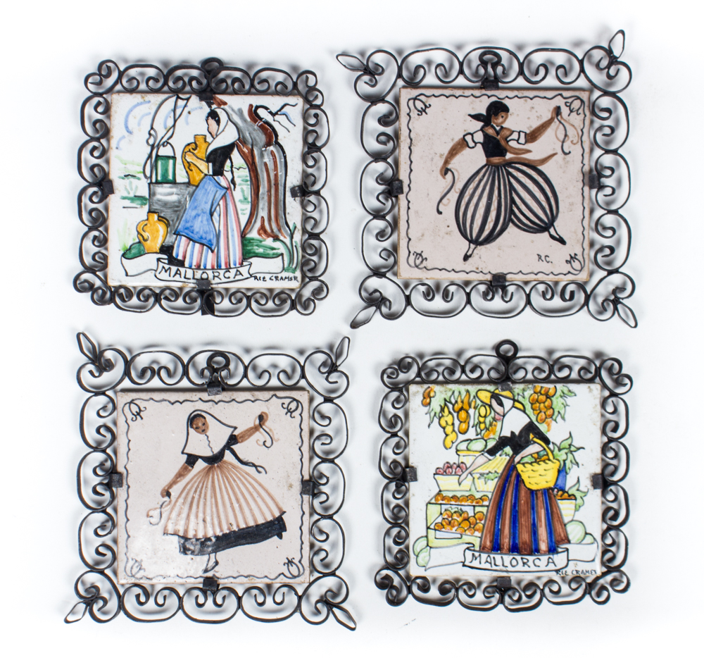 4 tiles by Rie Cramer, dated 1962 and 1964. All with design Mallorca, 10 x 11.5 cm. each, in contemporary metal decorative frame. Added: Viva Mallorca, Leopolds, 's Gravenhage, 1956. 1st ed. 176 pp. with d.j.