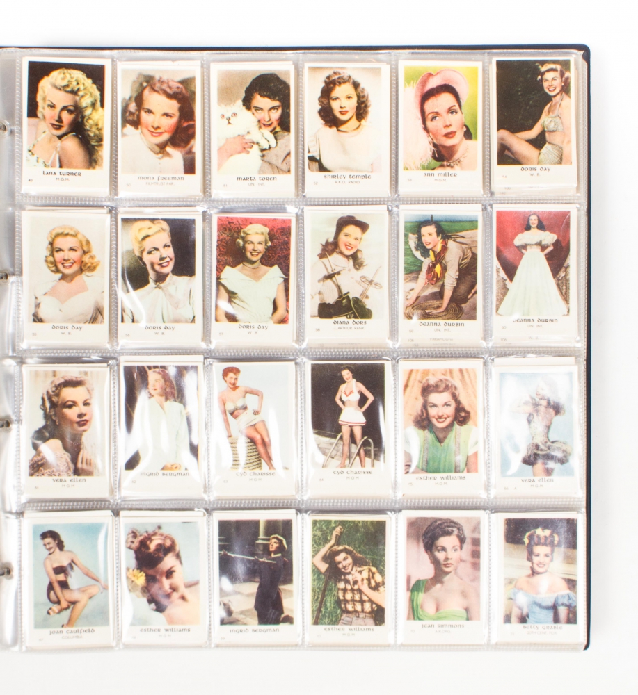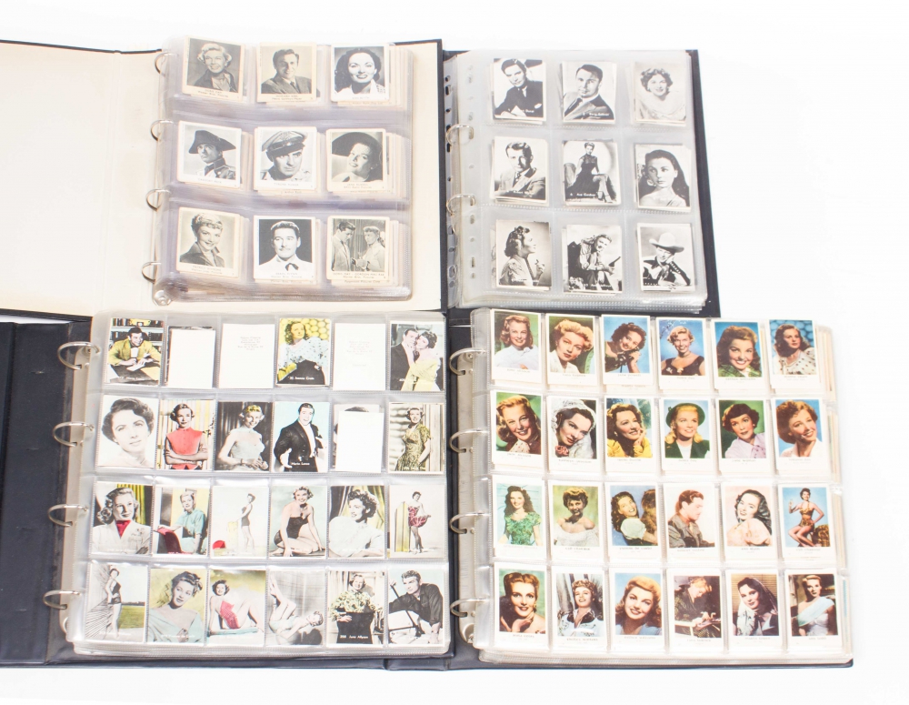 2 insert albums with more than 1500 film star pictures by various chewing gum companies such as Star-Gum-Works, Smith and Maple Leaf and Belgian Chewing Gum, incl. MGM series A-E nearly complete, each with 198 pictures, and various other series. All '30s-'50s.