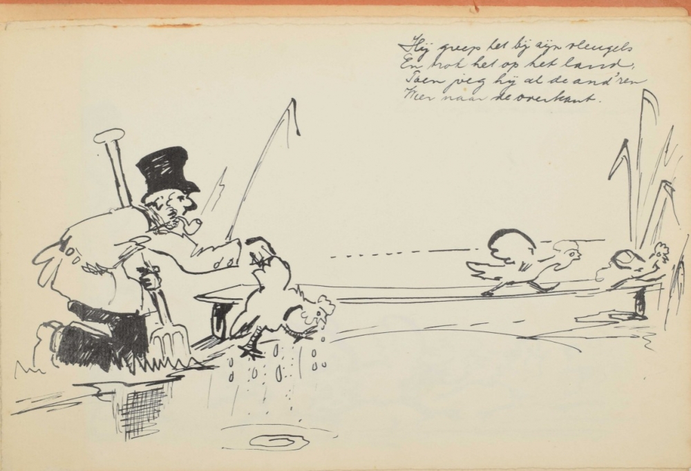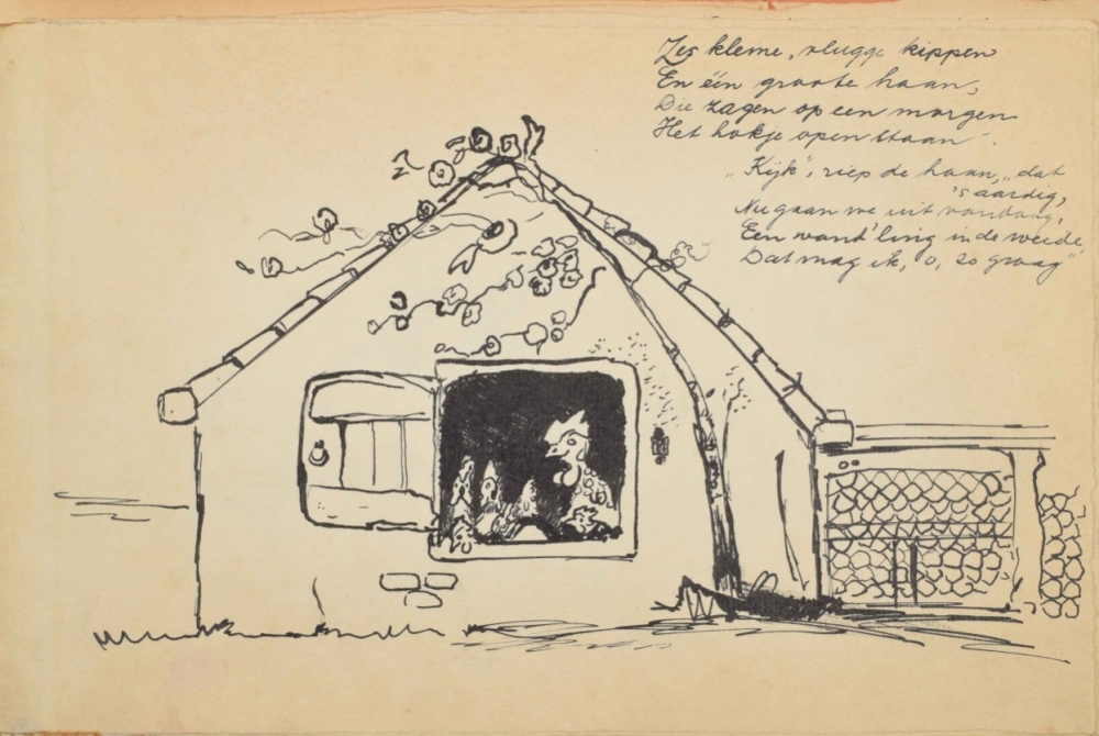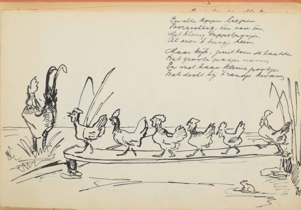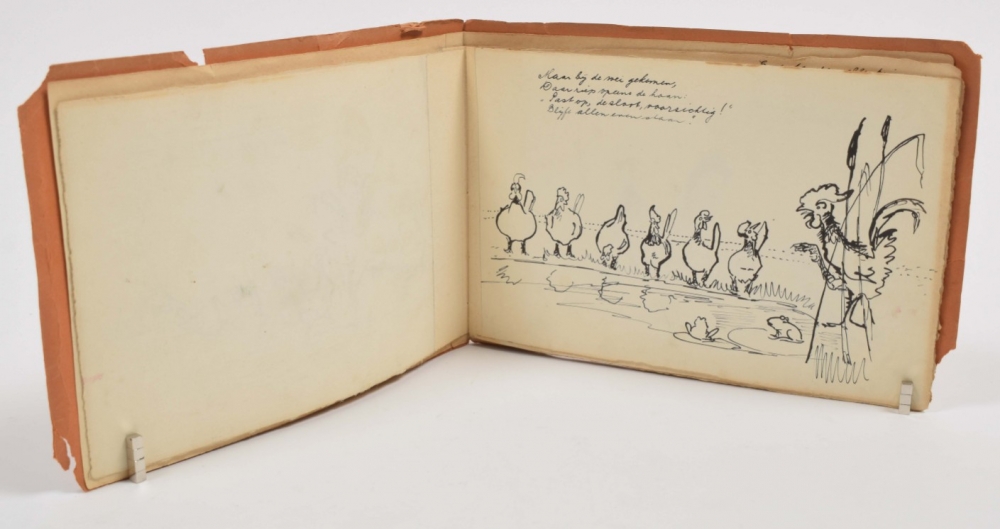 Charming manuscript of a Dutch children's book, 11 p. Ink drawings with rhyming text.