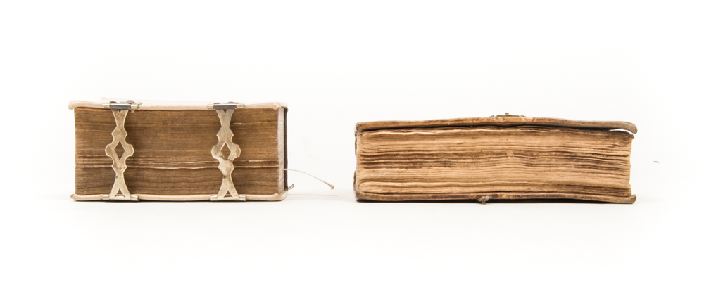 Used but complete copy with various defects: partly waterstained; leaf FFf 6 lacks a small corner, with loss to text, top endpaper partly lacking; binding lacks ties and the clamp.