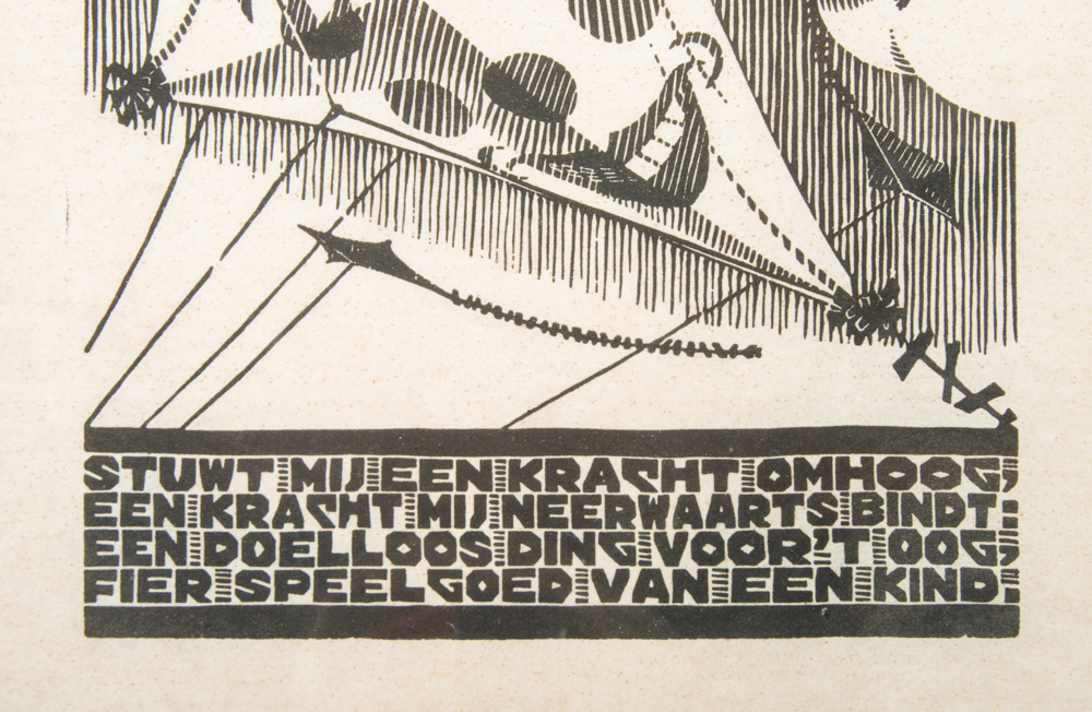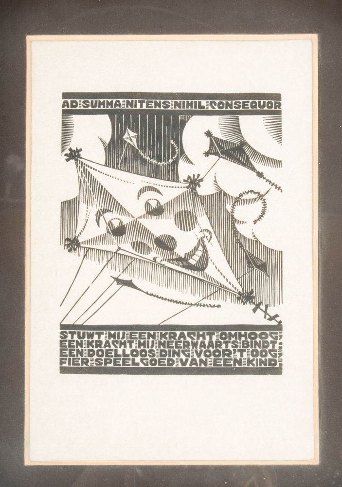 Woodcut on Japanese paper for XXIV Emblemata. Dat zijn zinne-beelden / spreukverzen van A.E. Drijfhout, 1932, monogrammed in block, 17.7 x 13.9 cm., framed (visible paper size 26.5 x 18 cm.).