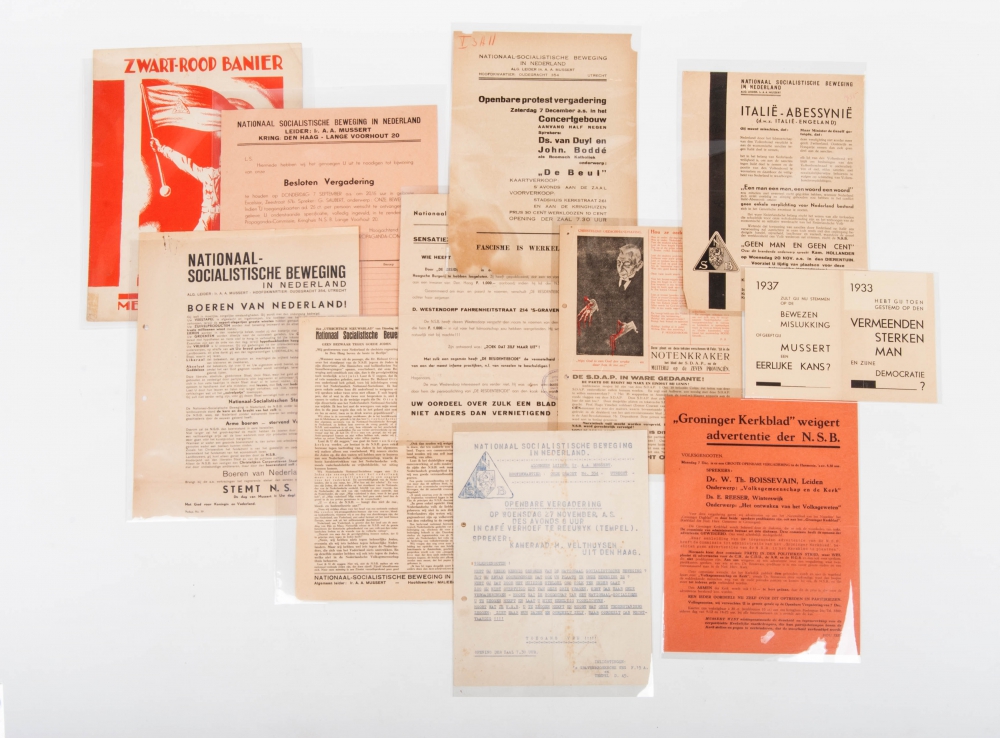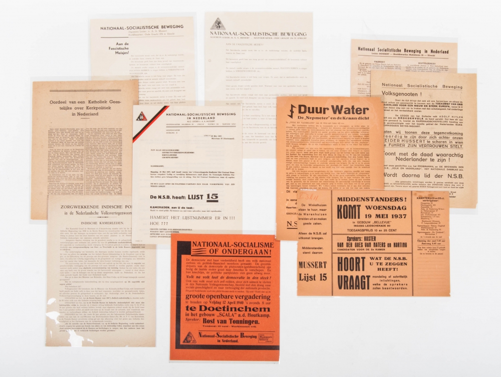 second half '30s, consisting of pamphlets, election posters (list 15), announcements of meetings and presentations, propaganda brochures, a sheet of 5 large picture stamps, etc., various sizes.