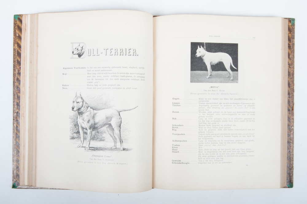 Uitgegeven door de Nederlandsche Vereeniging van Liefhebbers en Fokkers van Rashonden "Cynophilia". Samengesteld door H.A. graaf van Bylandt President der Vereeniging. Met ruim 400 Illustratieën. N.pl. or publisher, n.d. (1894), 404,26,7 p., richly illustrated (incl. several folding plates), contemporary half leather with the original cover bound along, 4to.