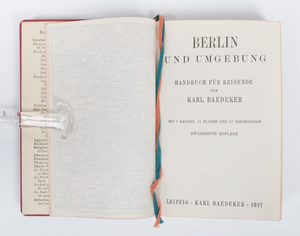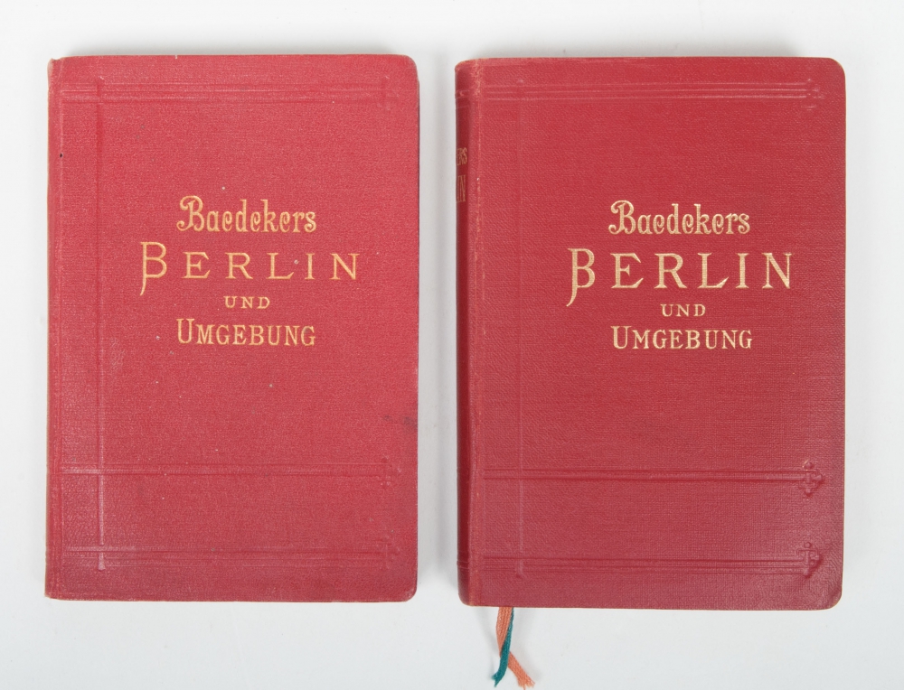 With: Berlin und Umgebung. Handbuch für Reisende. Karl Baedeker. Leipzig. Verlag von Karl Baedeker. 1927. Small 8vo, red percale binding, title on spine and front cover with gilt stamping. Complete with 3 maps, 11 plans and 17 floor plans. Very good. D220.