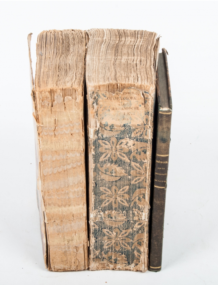 Combined with: Mémoire Historique sur la restauration des Pays-Bas en 1813. Auguste Joos, (transl. J.H. vander Palm). Bruges. 1828, small 8vo, half leather, spine with title in gilt stamping. First quire tender, 134 pp. Good.
