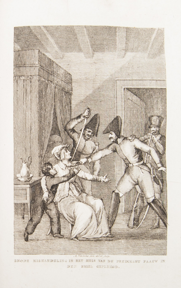 J. Konijnenburg. The Hague. Johannes Allart. 1816 & 1817. 2 volumes in one binding; illustrated paper cover, title with vignette by Van Bree and Van der Meulen, as is the end vignette, 672,(4),77,(2) pp., 3 portraits by Van der Meulen, Pieneman, W. van Senus and H. Langerveld, further 12 full-page engravings by Pieneman and Vinkeles.