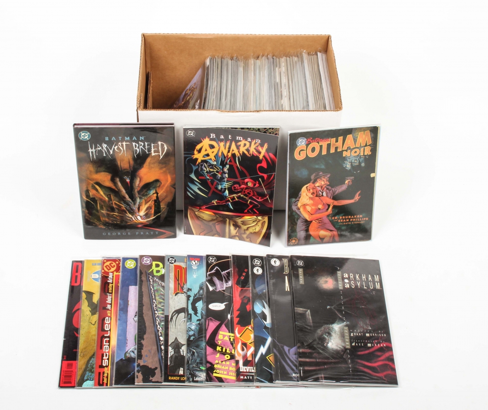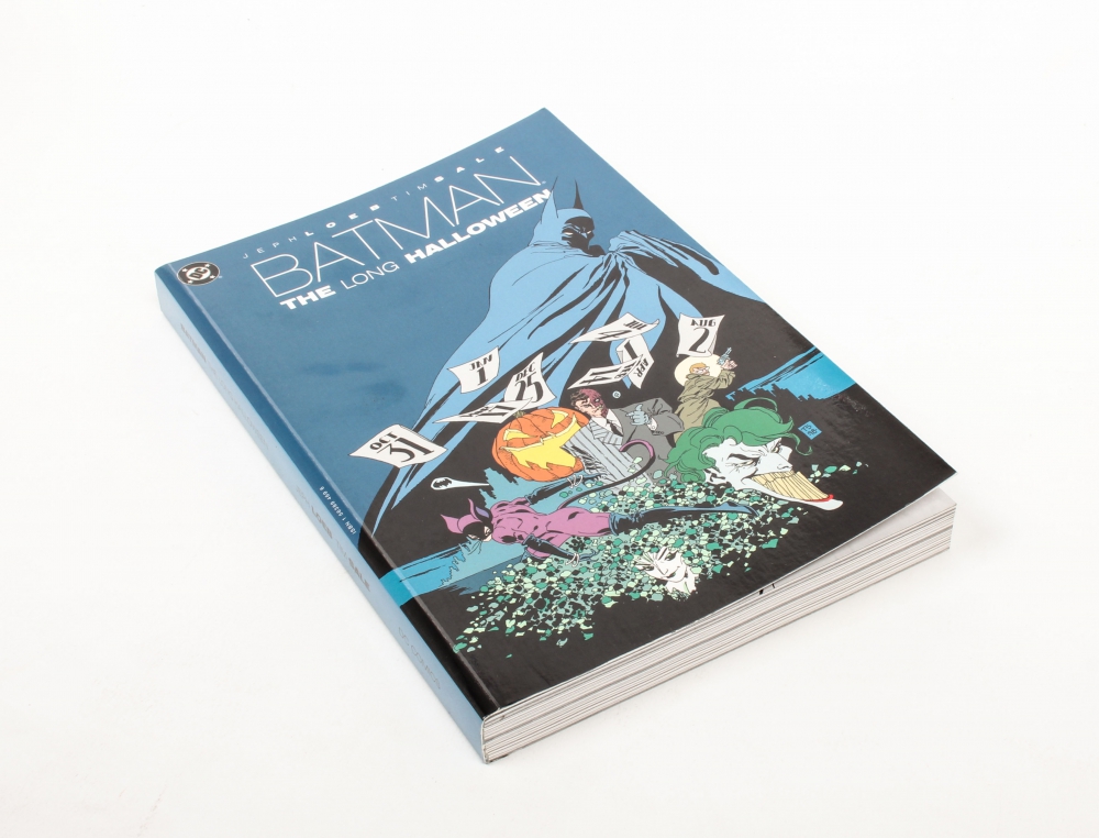 Jeph Loeb / Tim Sale, Batman - The long Halloween, Batman - Dark Victory 1-13 + Alan Moore, The Killing Joke + George Pratt, Batman - Harvest Breed, hc with dust jacket, and 21 more + Todd McFarlane, Spawn Book 1-8 + Curse of the Spawn, 4x TPB + Spawn: The Dark Ages 1-28, and 12 more. All in good condition.