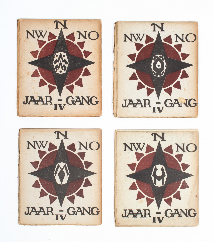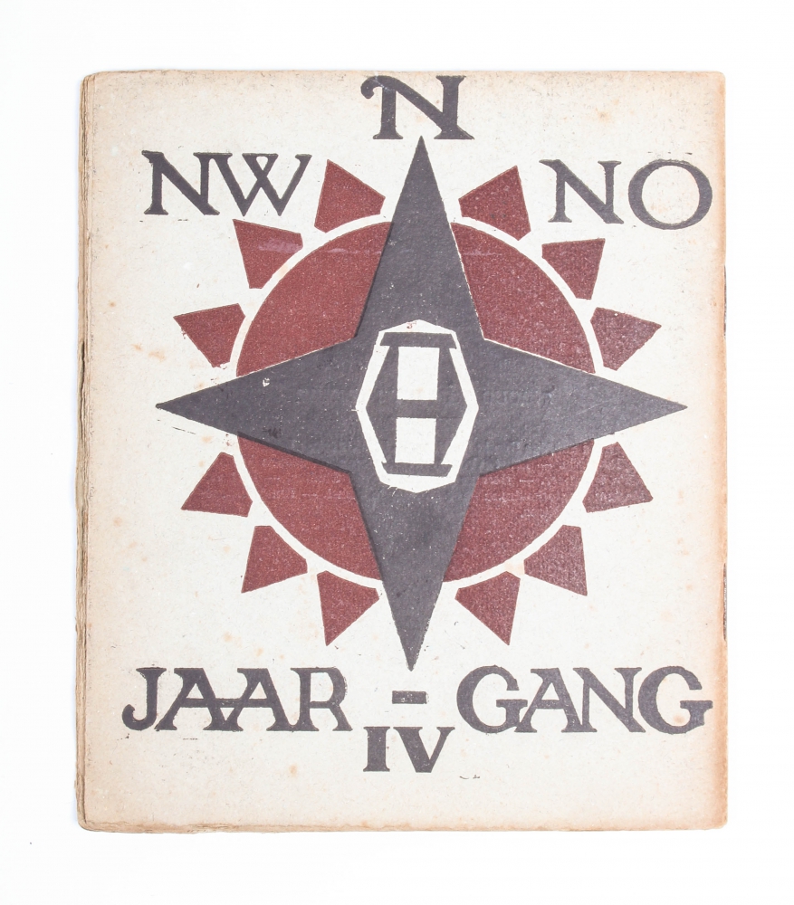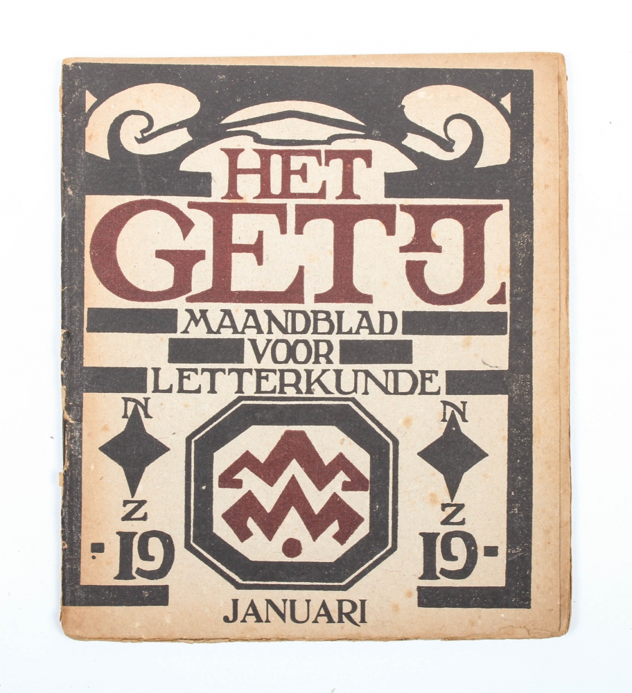 Beautifully detailed and very rare magazine, especially as complete volume as presented here. This important magazine appeared with various subtitles from 1916 to 1924, then continued as De Vrije Bladen. The front and back covers show a different stylised astrological sign every time. The final issue contains a table of contents for the entire volume, from which it appears that Theo van Doesburgh contributed 4 articles. The title inside differs slightly from the one on the outside: "'Het Getij', Maandschrift voor Letterkunde, staat onder redactie van Herman van den Bergh, Ernst Groenevelt, Jhr. J.W. de Marees van Swinderen en Constant van Wessem. Medewerkers zijn: Theo van Doesburgh, Just Havelaar, C.J. Kelk, Wouter Loeb, Willem de Mérode, M. Nijhoff, E. d'Oliviera, Martin Permys, Dr. M.H.J. Schoenmaekers, Noto Soeroto, Jeanne Willing, Co van Sweden, Karel Wash, Erich Wichman, H.Th. Wijdeveld, e.a."