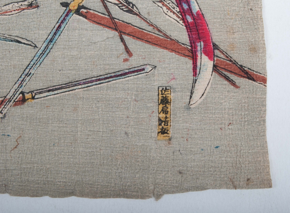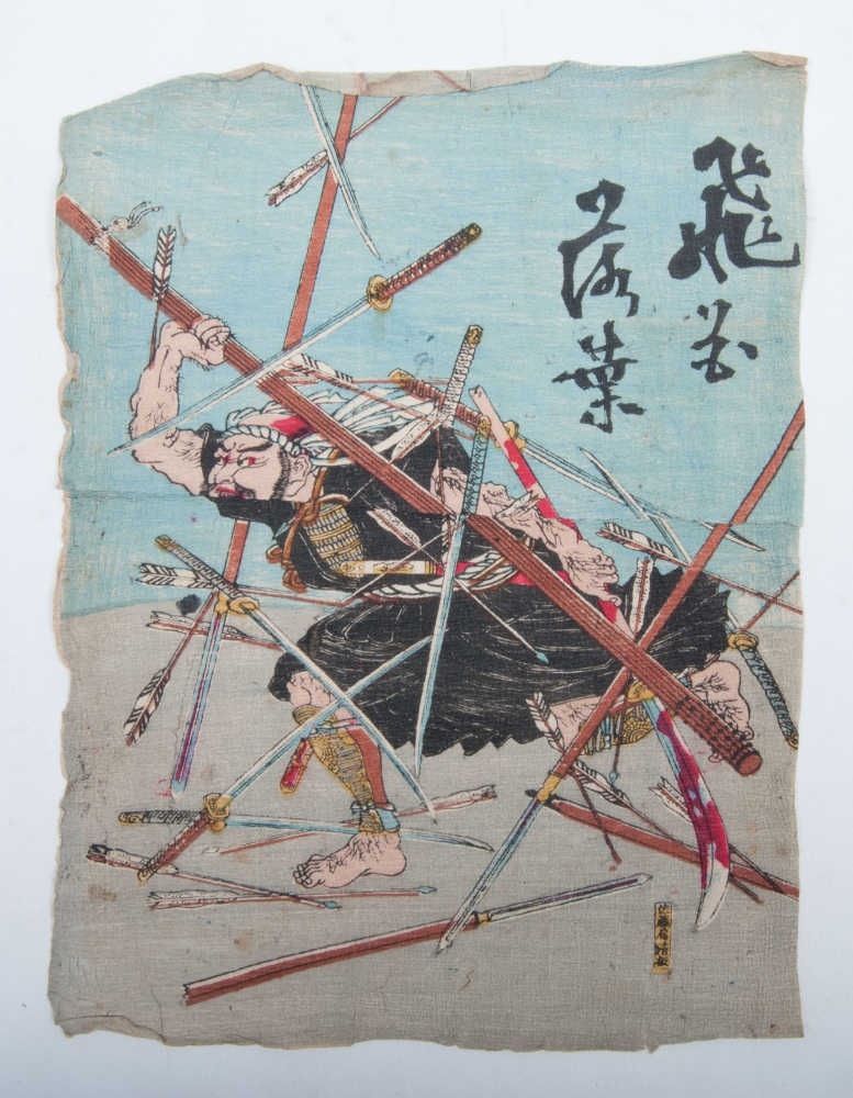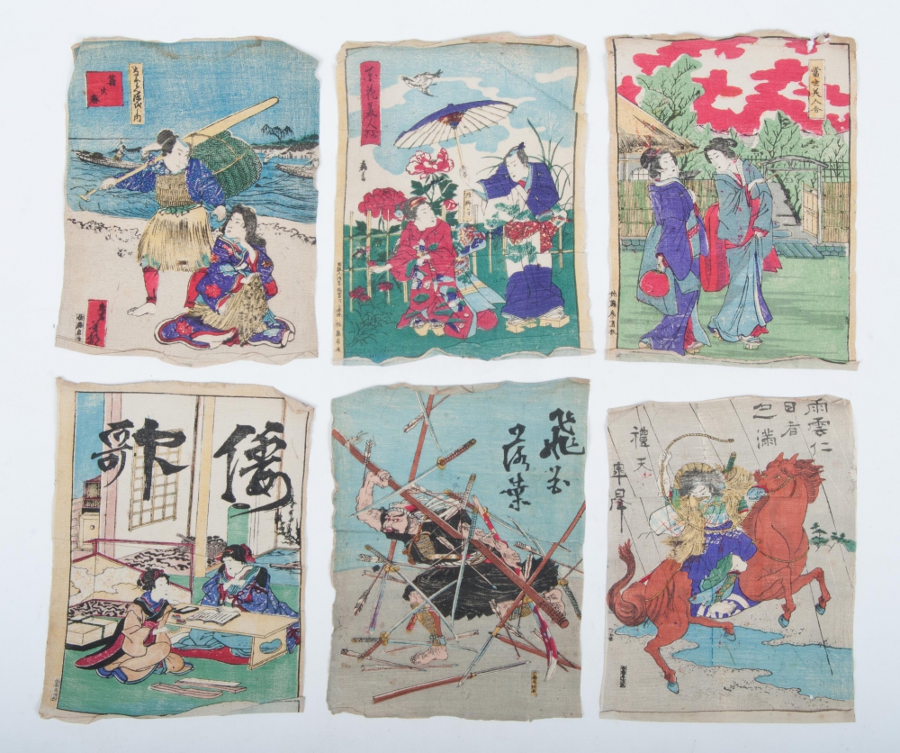 [Japanese prints] Lot with 6 colour woodcuts on crêpe paper,