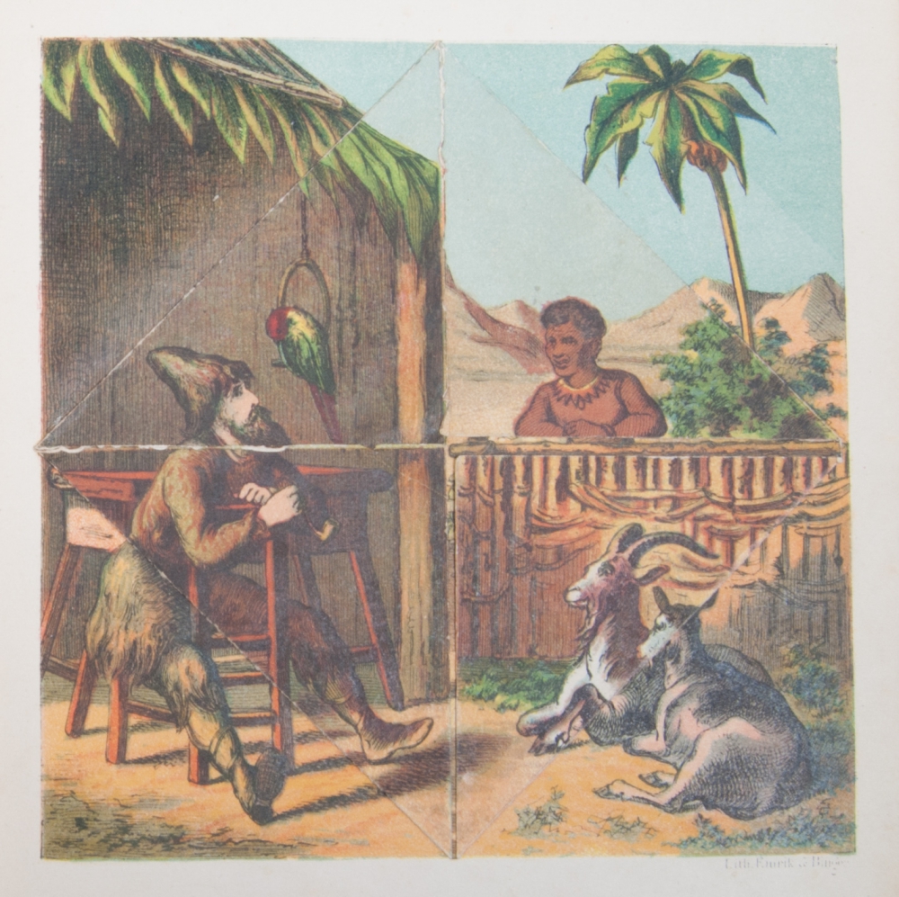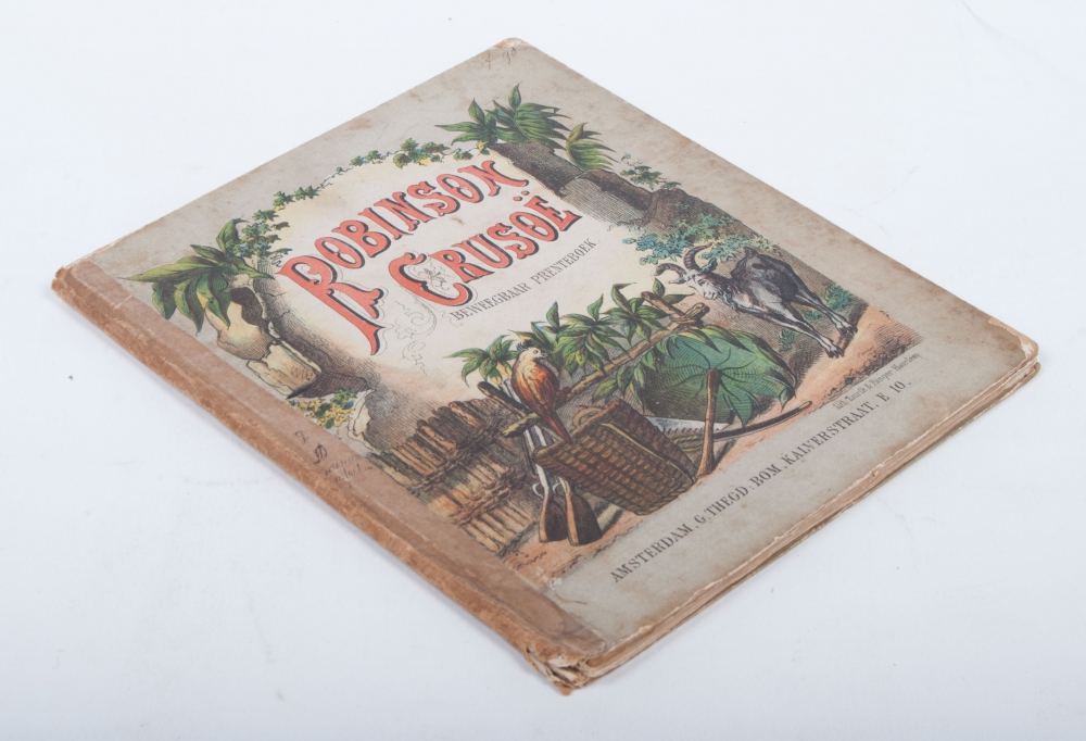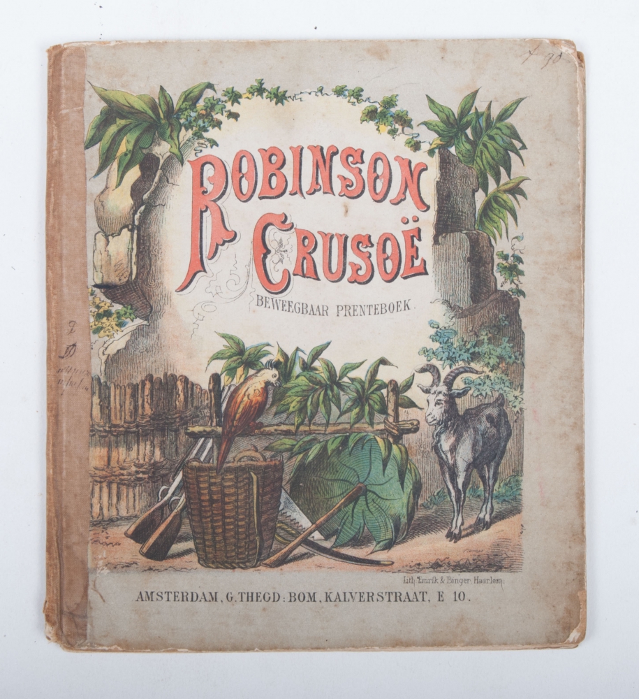 Amsterdam, G.Th. Bom, n.d. (ca. 1875), 12 text p., with 6 colourlithographic plates each with 4 foldable tabs and original colourlithographic cardboard by Emrik & Binger, 19.5 x 17 cm.
