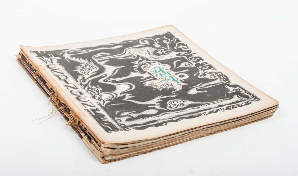 No. 1-10 and 12. Amsterdam, De Hooghe Brug, January 1921 - December 1921, 11 issues in 7 volumes, richly illustrated, original cover, bound as block book with raffia, large 4to size.