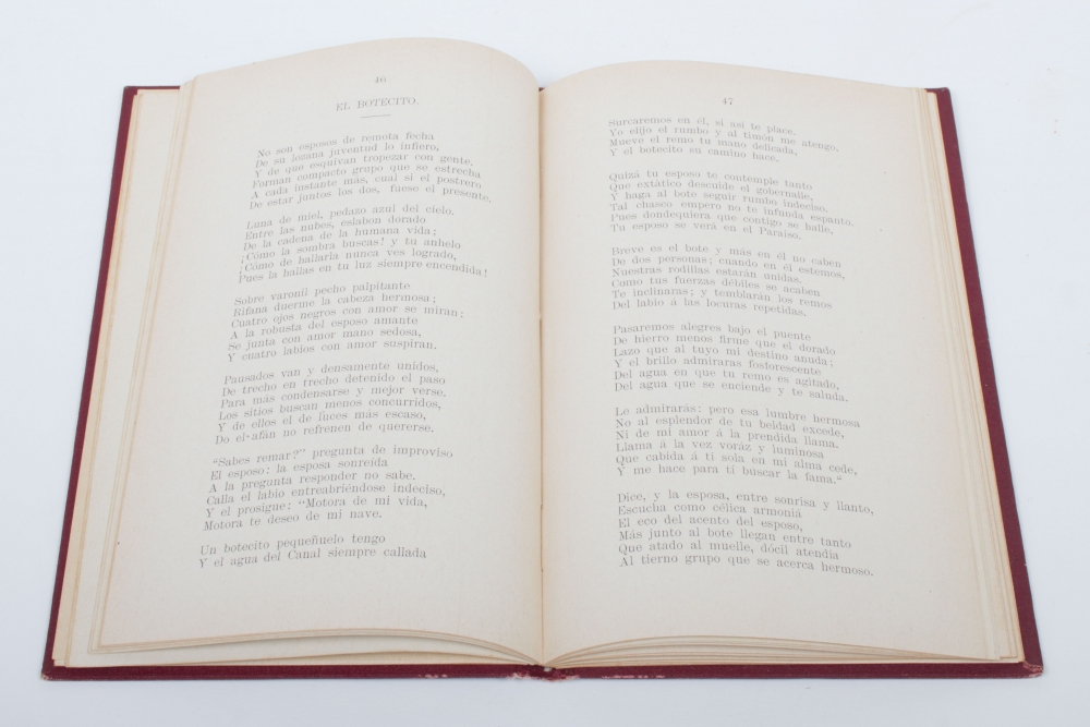 Recopiladas y publicadas por unos amigos del finado autor. Foreword B.A. Jesurun, Curaçao 1914). Nijmegen, J.K. Kloosterman, n.d. (1914), 112 p., original gilt lettered and blindstamped cloth (1 leaf of foreword loose, top hinge vulnerable on inside).