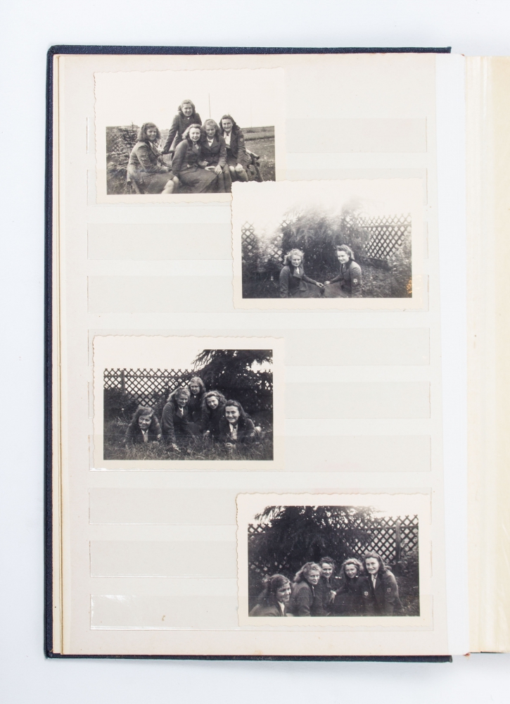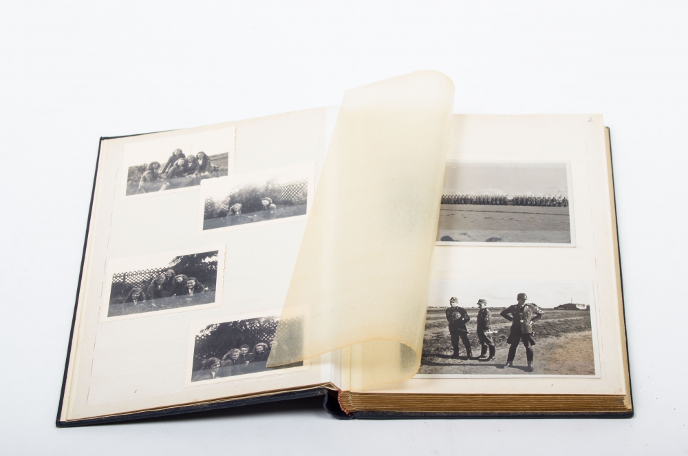 incl. (series of) group portraits, activities, buildings, parades, sports and a nazi monument, various sizes but mostly ca. 6 x 9 cm., loosely inserted in stamp album, 4to size.