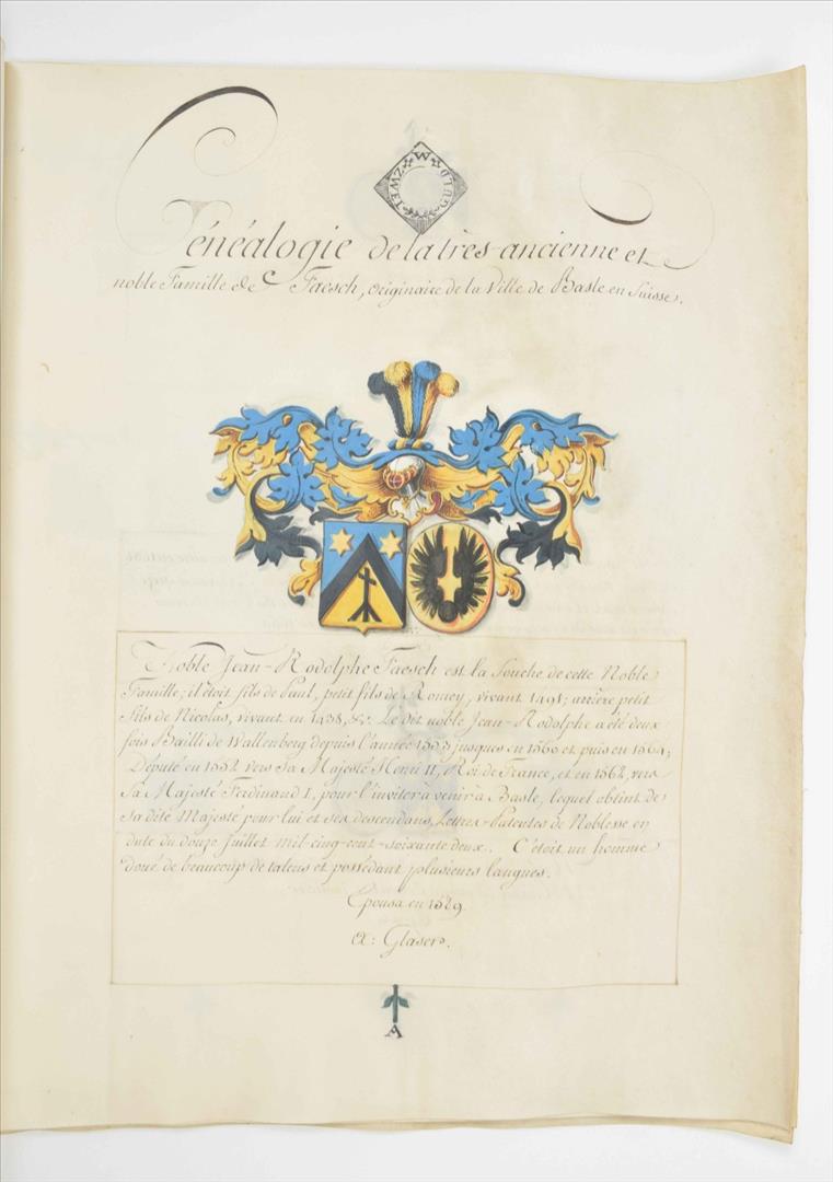 [Genealogy and heraldry] "Généalogie de la très ancienne et noble Famille de Faesch,