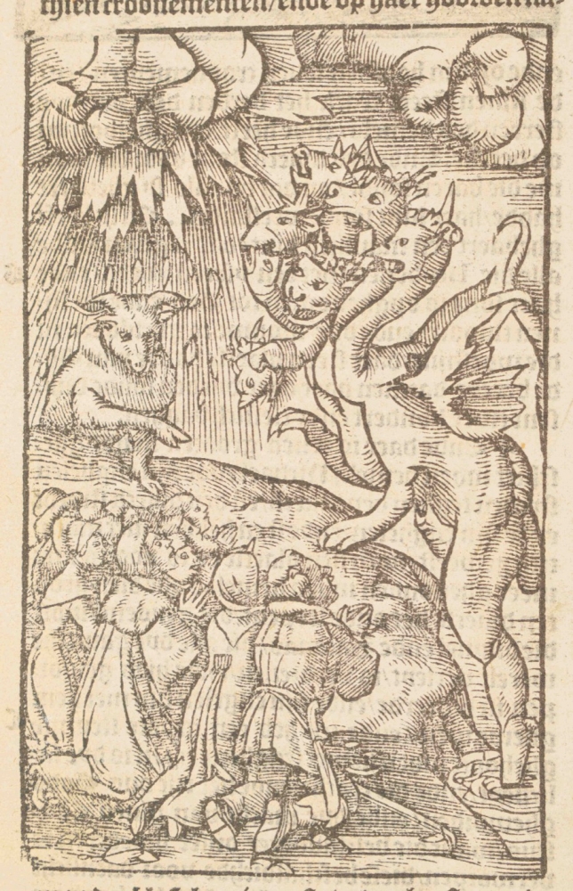 met grooter neerstigheyt overghesteldt ende ghecorrigeert na dat oprecht Latijnsch exemplaer. (...) met veel schoone figuere verciert (...). Antwerp, Hans de Laet, 1556, 2 parts in 1 vol., (4),(408) [incl. final blank]; (96) lvs., title page printed in red and black and within woodcut border of illustrations, num. woodcut illustrations in the text, contemporary blindstamped panelled sheepskin over wooden boards, brass catches, remnants of clasps and corner strips preserved.
