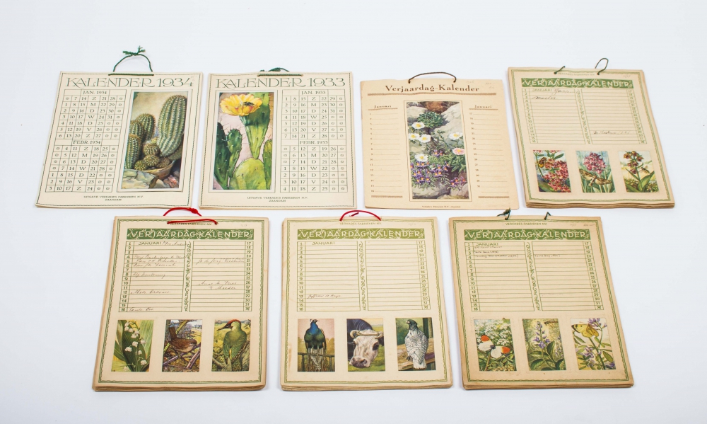 Verjaardag-Kalender 1926, 1933 (2x), 1934 & 1935. With a few names written out, else in good condition and complete. With: Kalender 1933 & 1934, in good condition and complete.