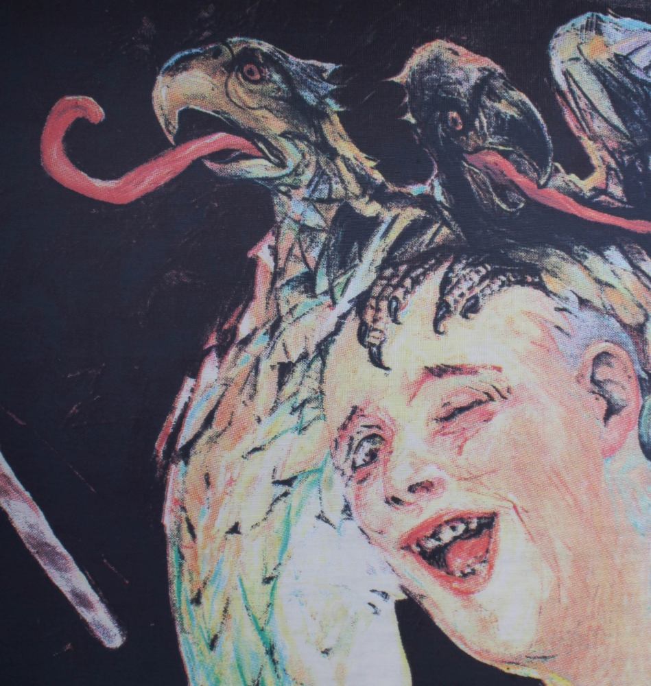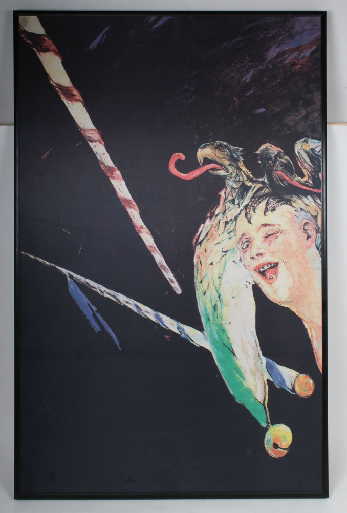 (untitled). Screen print on bunting. Size 140 x 90 cm. In black aluminium frame. Acquired from the collection CBK Groningen.