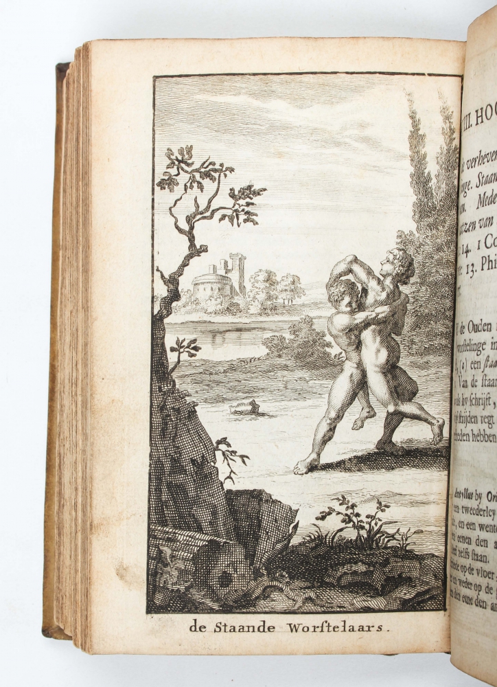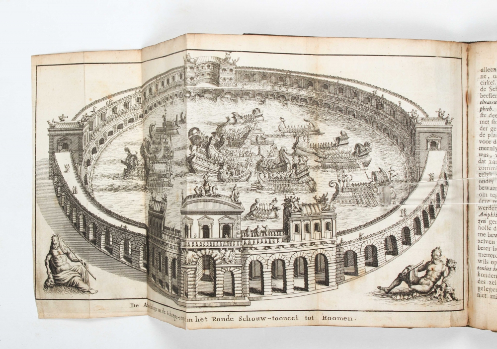 en Loopbanen der Grieken en Romeynen, (...). Te Rotterdam, by Reinier van Doeburg, Boekverkooper inde Waarheyd, 1703, (70), 504, (28) pp. 8vo, vellum, engraved frontispiece, complete with 12 full-page engravings and 13 folding engravings by Adamus van Halen. Slightly tanned in margin, else good.