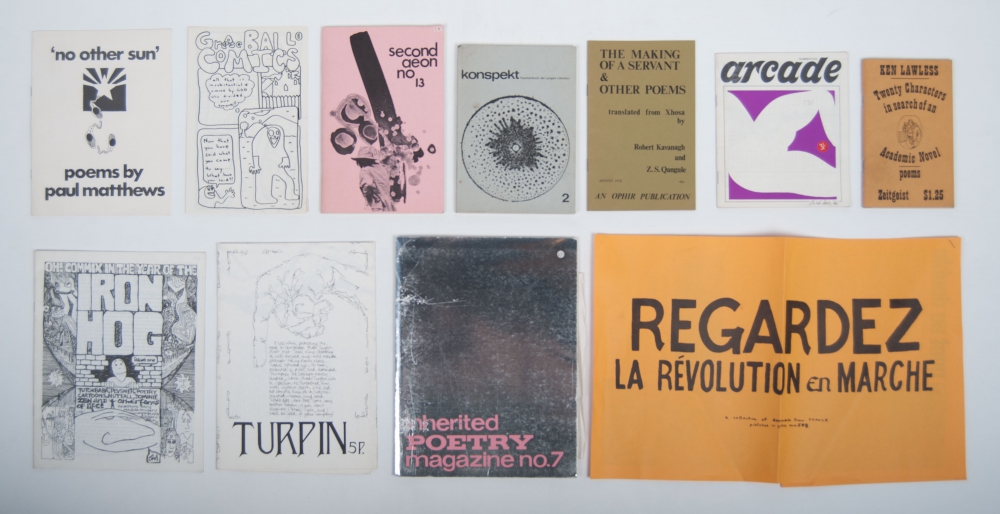 Poems. Ken Lawless. Zeitgeist, 1970. 66 pp. Stapled + Konspekt Taschenbuch der jungen Literatur 2. Volker Riniger, Mahlber, Hamm, ca. 1970. 78 pp. + Second Aeon no 13. Ca. 1970. 104 pp. + Inherited Poetry Magazine no. 7. Keith Abbot, Peter Bland et al., ca. 1969 - and 7 more.
