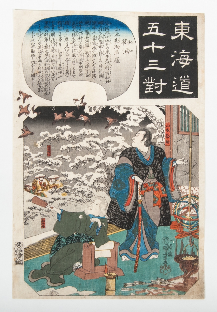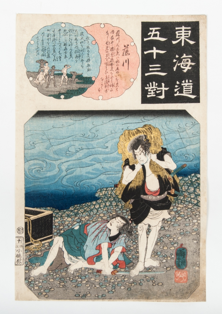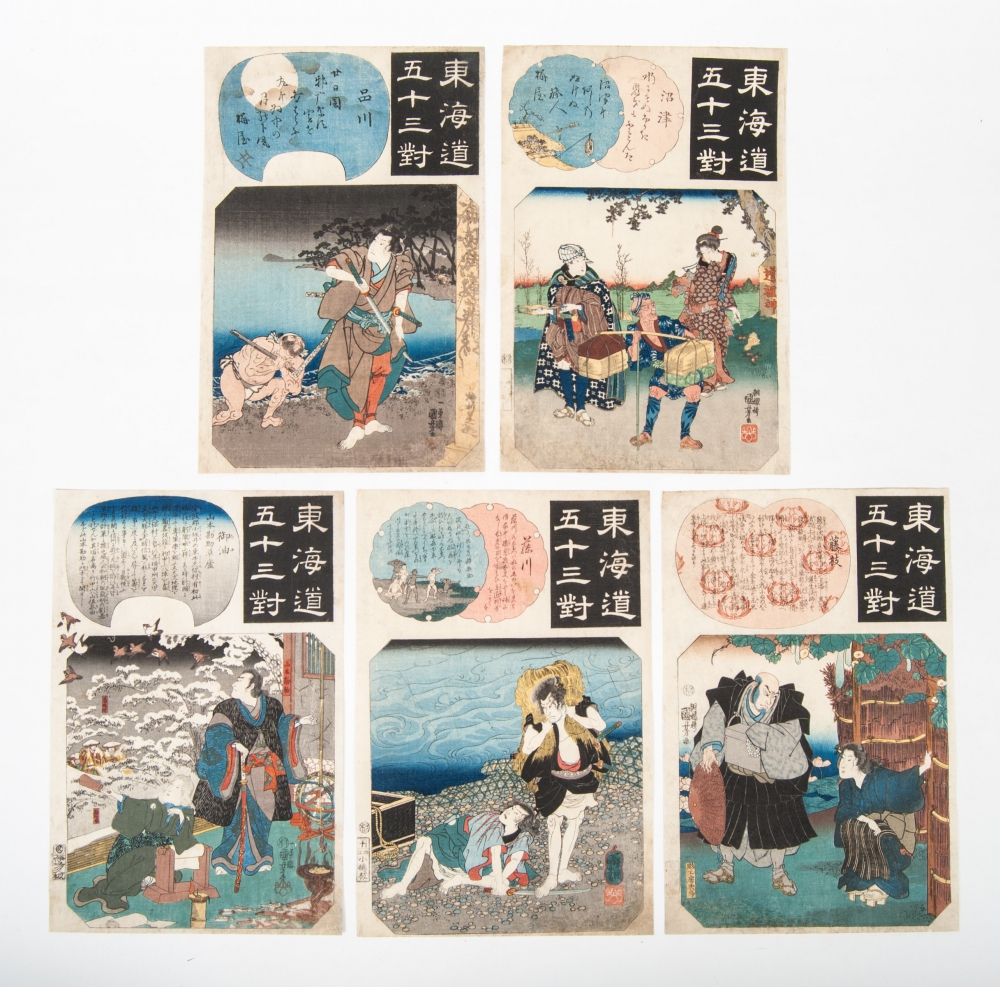 5 Oban woodcuts, ca. 1860. Each size 39.5 x 24.5 cm.