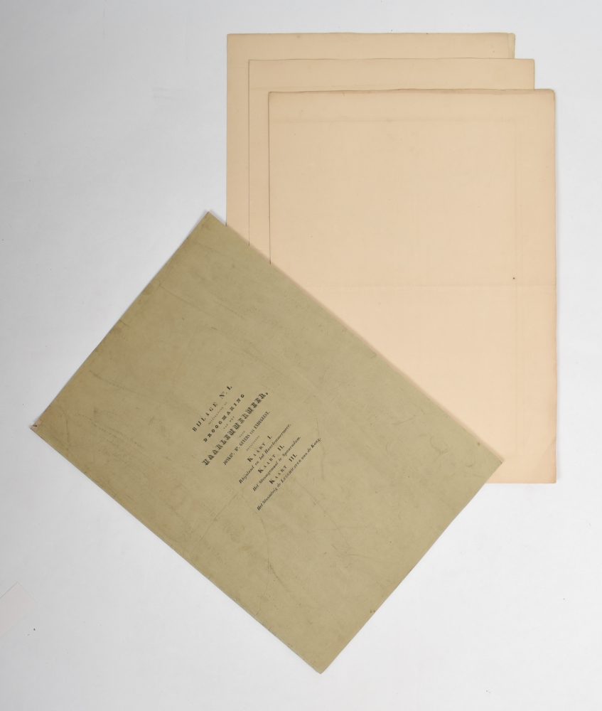 The first supplement (1843) of the large-folio atlas with 8 plates accompanying the work "Over de droogmaking van het Haarlemmermeer" (1843-1861). Rare in this original condition (three maps in one wrapper).
