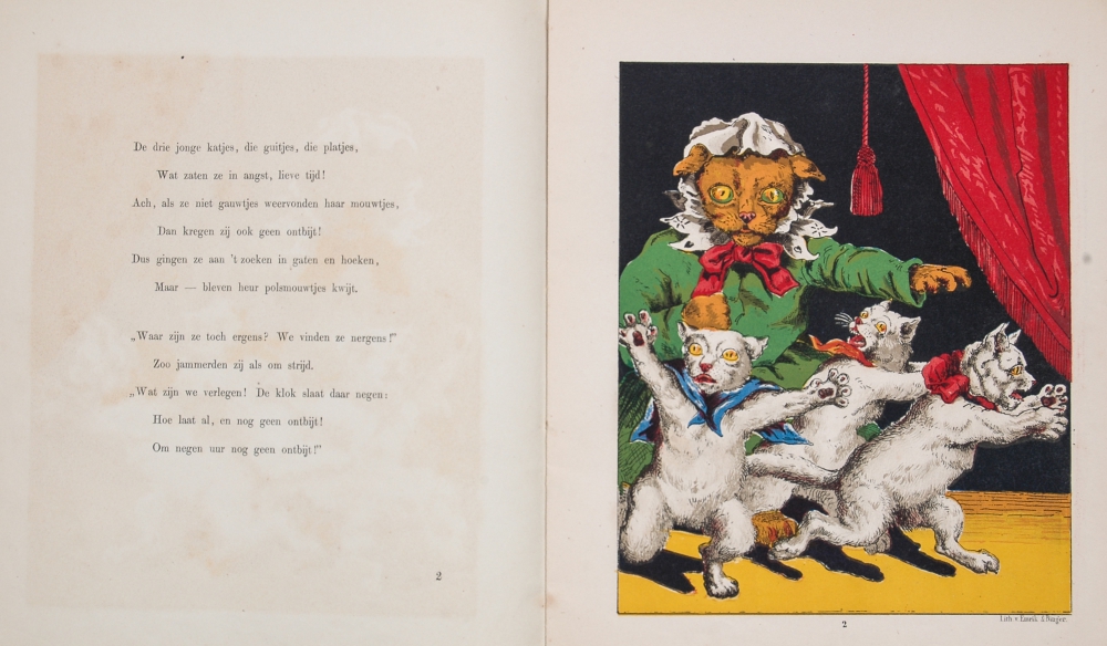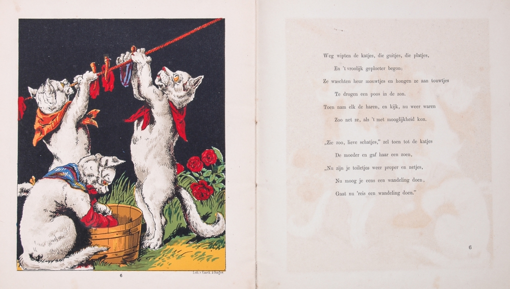 Rijmen en Vertelsels voor de kinderkamer van J.J.A. Goeverneur. Utrecht, C. van der Post Jr., ca. 1890. 4to, 6 pp. text and 6 chromolithogr. full-page illustrations.