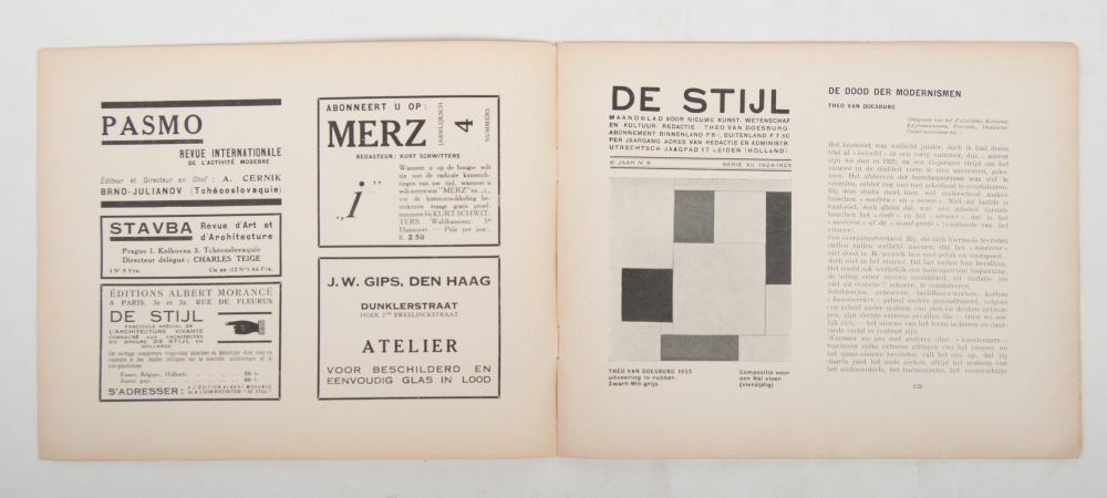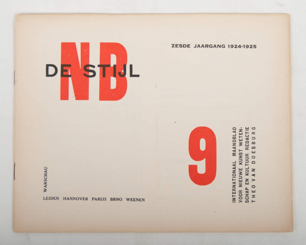 NB De Stijl: Internationaal Maandblad voor nieuwe Kunst wetenschap en Kultuur. Redactie Theo van Doesburg, sixth year 1924-1925, no. 9. Lovely copy.