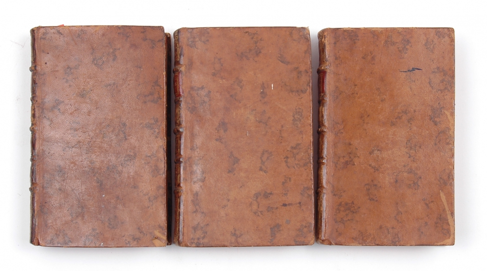 Two frontispieces lack part of the blank margin, the title page of volume I has a tear, here and there repairs in the margins and here and there slightly tanned/ foxed and some other minor defects. Bindings with some traces of use. Good set, each volume with the ex libris of Joseph Steinman on inside endpaper and the repeated stamp of Jouannau de Nully (La Vaudourière Castle at Lunay) at the beginning.
