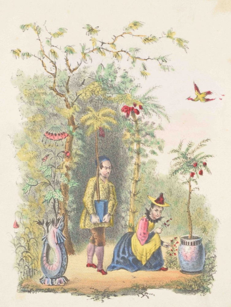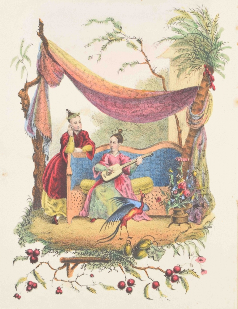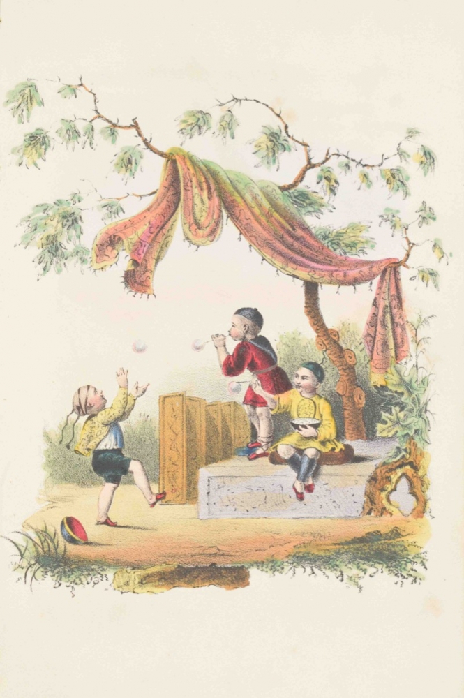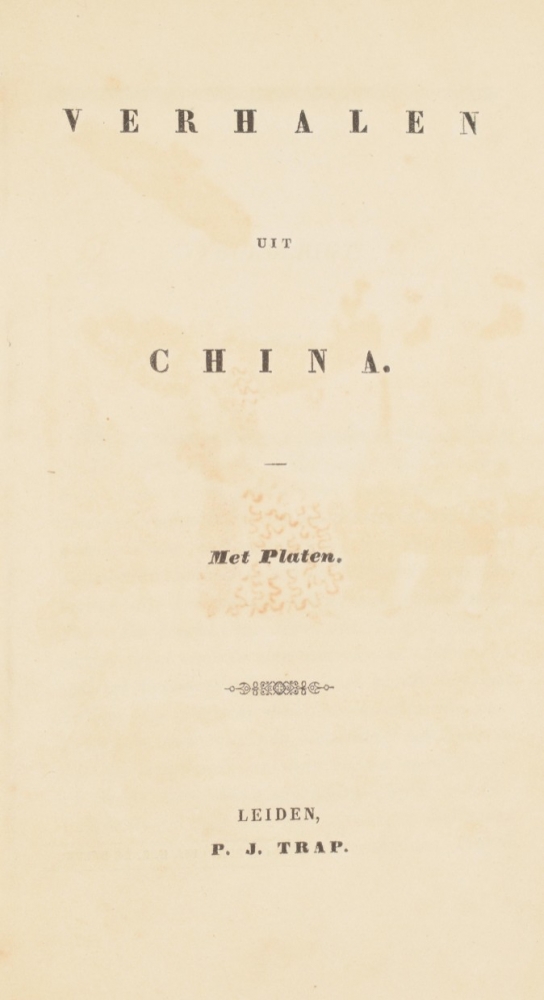 Huiskamp V42; The Children's World of Learning 2876: "First edition of one of the most famous Dutch Children's books, beautifully produced and exquisitely illustrated and coloured by hand after the Chinese fashion. The book presents five stories on the daily life of children in China, and was intended to teach Dutch children about life in China and to make Dutch children feel closer to Chinese children."