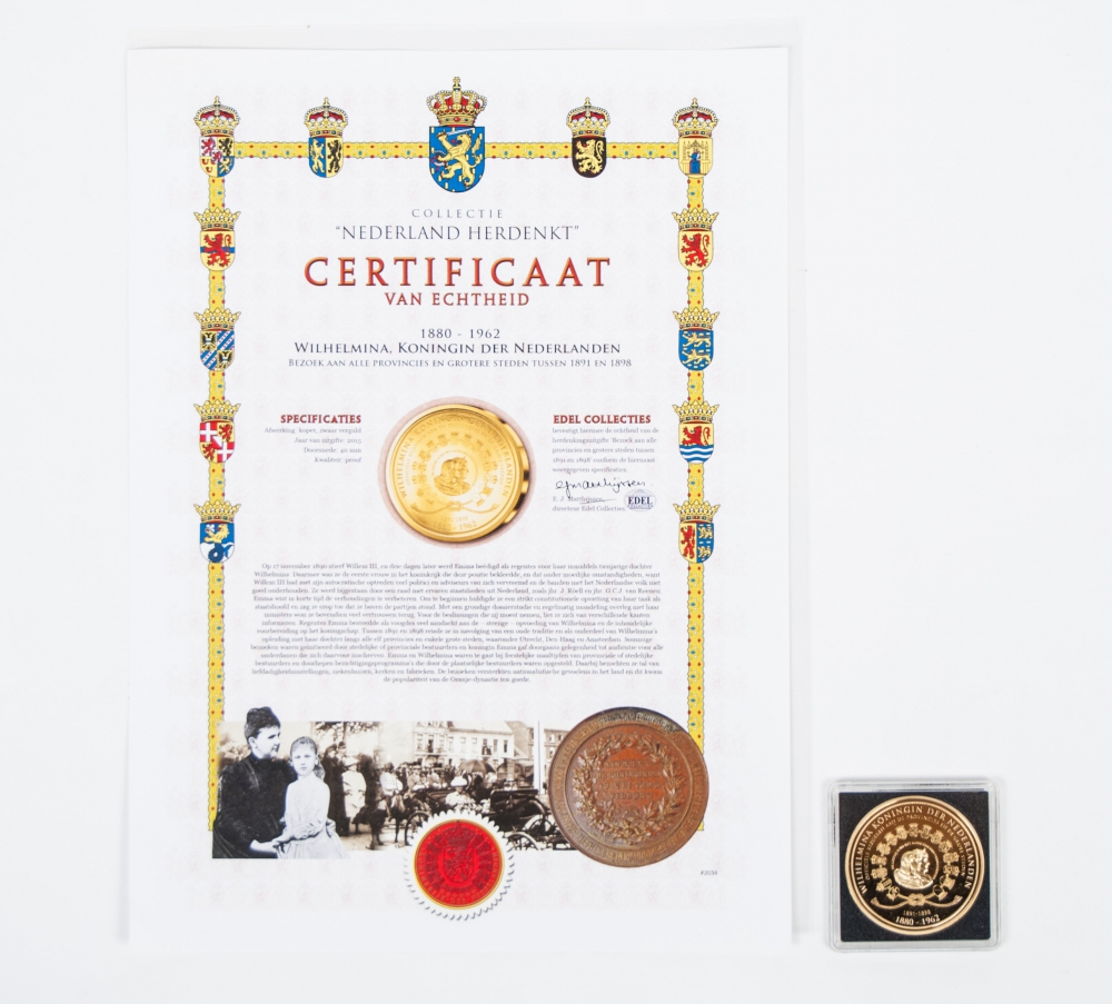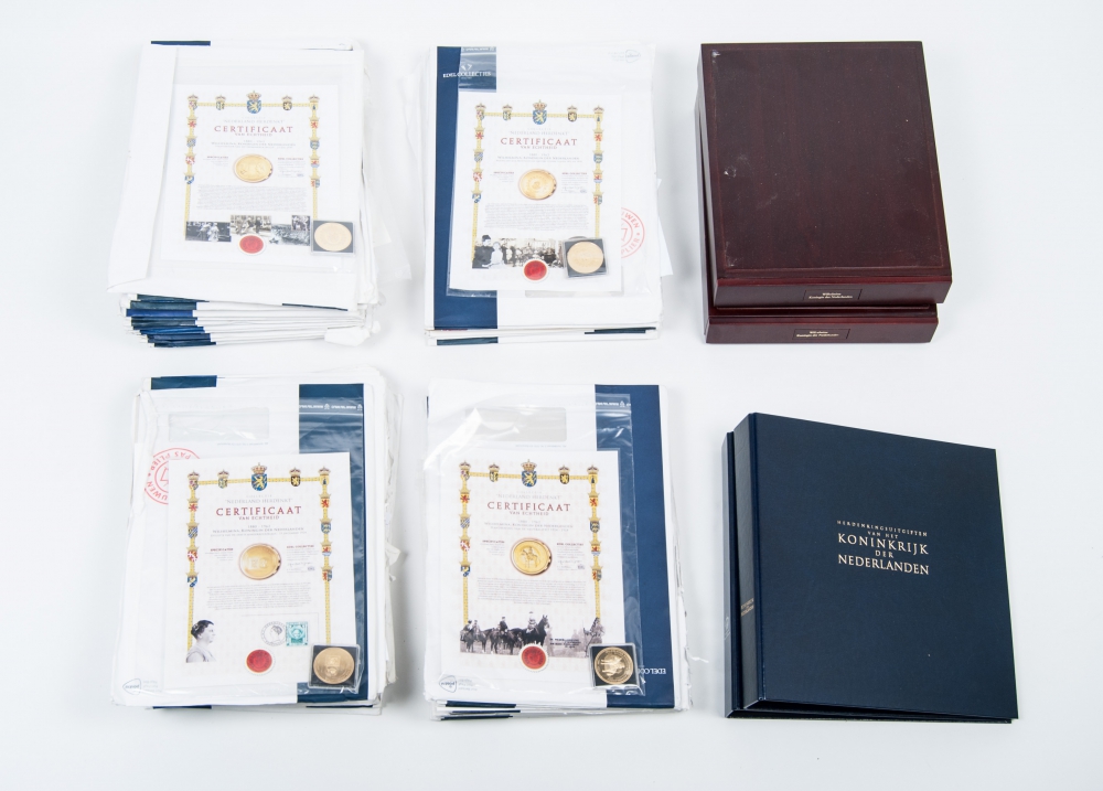 Collection with 51 coins from the series. Gilt, published by Edel Collecties, 2012-2015. Each coin with certificate of authenticity. Proof. With two binders from the series and two wooden boxes (total 55).