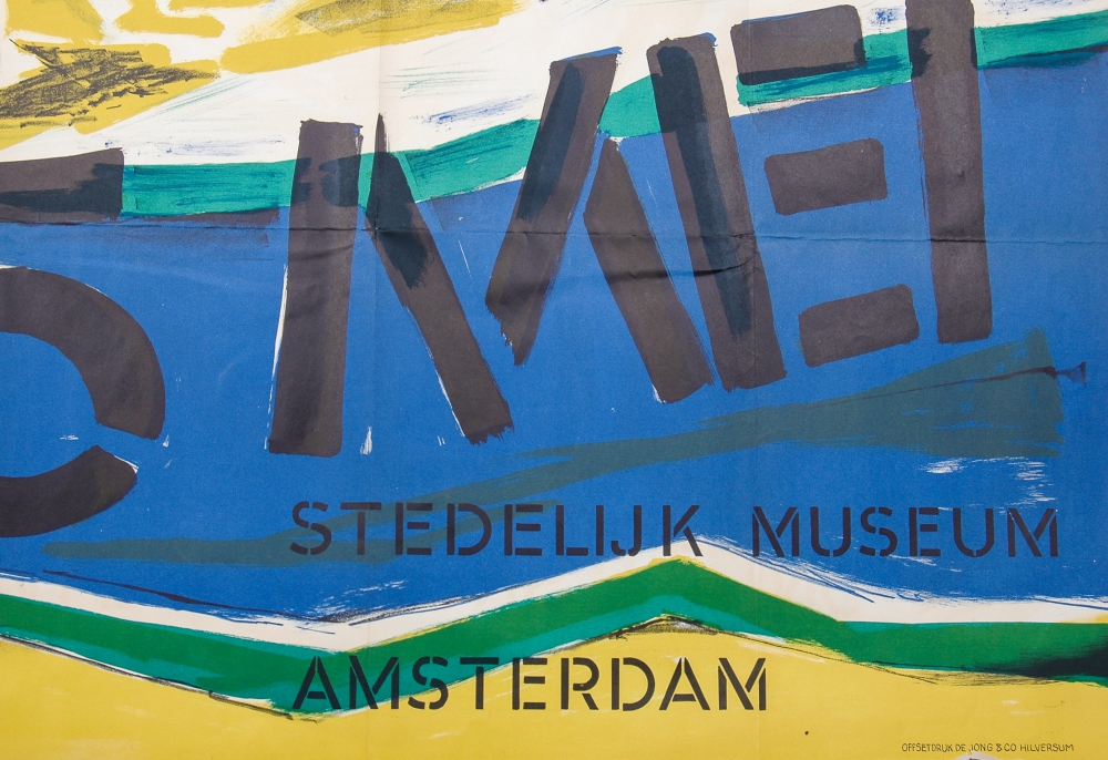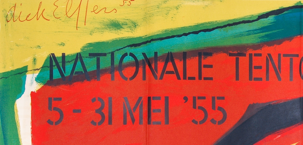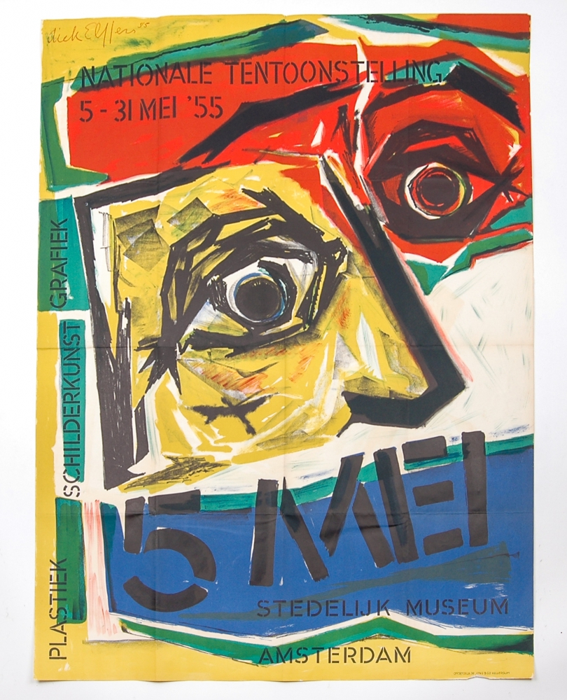 Nationale Tentoonstelling 5 mei, Stedelijk museum Amsterdam, 1955. 107 x 78 cm. Ontw. Dick Elffers. Offsetdruk de Jong&Co, Hilversum - and 1 duplicate.