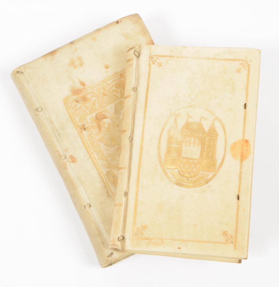 [School prize bindings. Gorinchem. Arnhem] 2 bindings: (1) Full vellum binding,