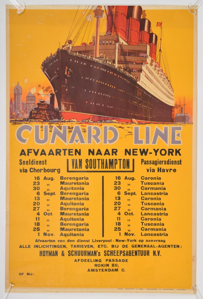 Charles Hallo (1884-1969). Red Star Line/Belgenland, ca. 1930. Antwerpen-New York via South-Hampton en Cherbourg. 98 x 64.5 cm.