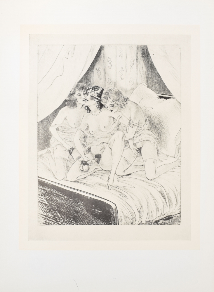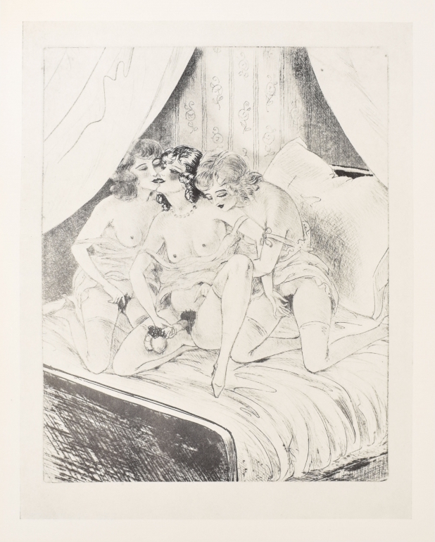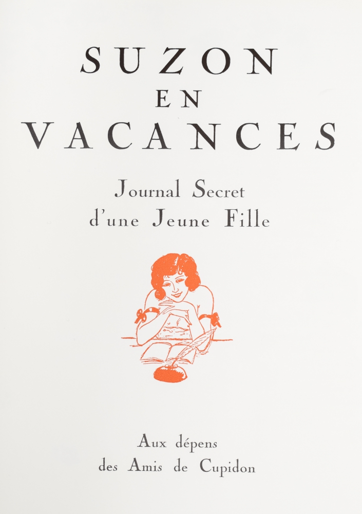 Journal Secret d'une Jeune Fille. Aux dépens des Amis de Cupidon. [Courbouleix]. Édition originale typographique achevée d'imprimer le 28 novembre 1968. Numbered copy no. 273. Loose inlaid quires. With 47 full-page erotic images, after the original from 1935. Size 36 x 27.5 cm. Good copy.