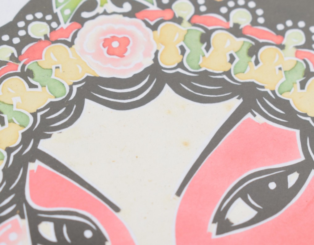 3 Japanese works of clipping art depicting faces. Each with signature.