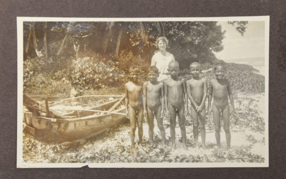 Private album with ca. 250 photos, nearly all taken in Indonesia of e.g. Javanese dancers or streetlife on the island of Madura. Property of one of the sailors on M.S. Baloeran, ca. 1930. Oblong cordbound album.
