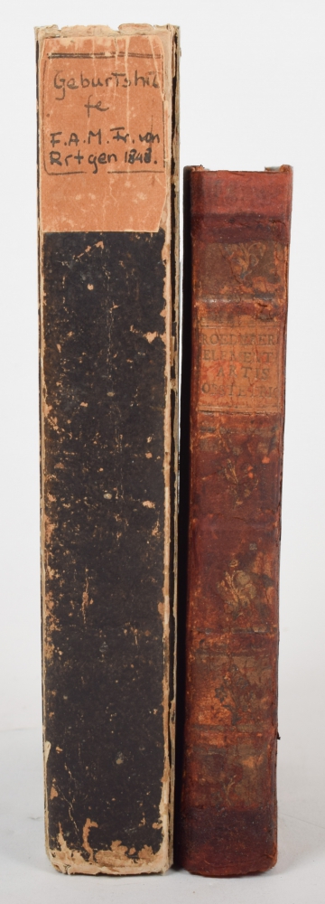In usum auditorum (...) Henricus Augustus Wrisberg, Goettingen, 1766. (16), 314, (22) pp. Small 4to, in half leather + Lehr-und Handbuch der Geburtshülfe für Ferd. von Ritgen, Mainz, Victor v. Zabern, 1848. 579 pp. 4to, in cardboard binding.