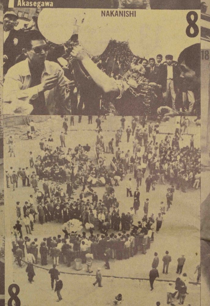 The poster was also sold crumpled and rolled, tied together with rope. Included in various Fluxus anthologies and kits. Hi Red Center consisted of Akasegawa, Natsuyuki Nakanishi and Jiro Takamatsu. Very good copy.