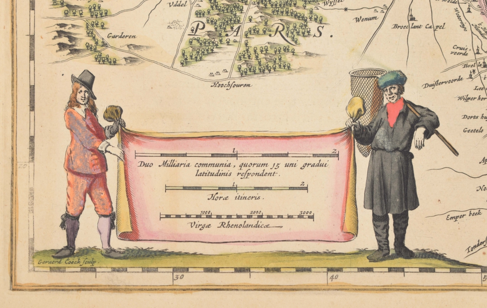 Antiquely coloured copperplate from the Spanish edition of: Nuevo Atlas. Paises Baxos o Belgia dividida en dos partes (...) Las Regiones Confederales. Amsterdam. Y Casa de Ivan Blaeu. 1663. Map image 44 x 55 cm., browned, 2 tiny wormholes in map image, vertical paper edges with fragile spots, water stains top edge, else good.