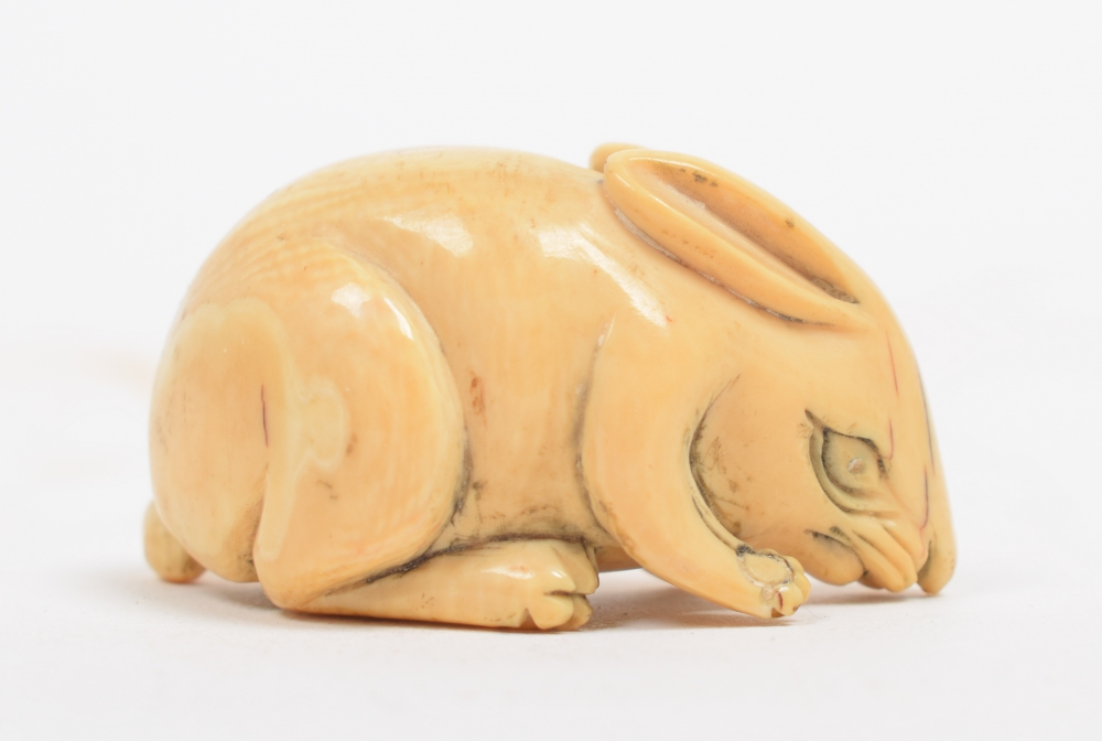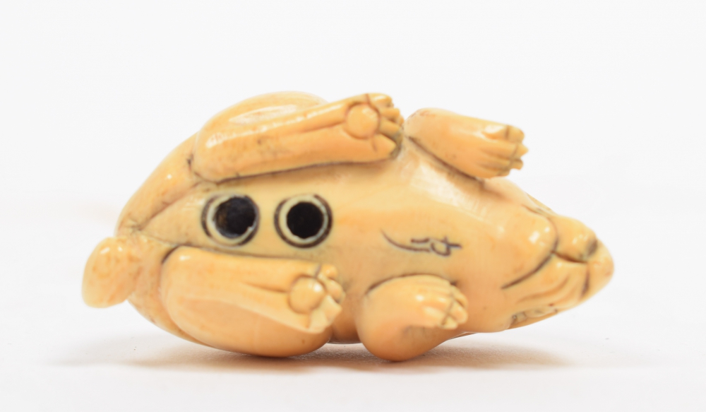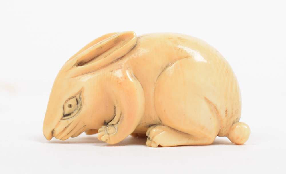 Ivory. Japan, 19th century, signed on bottom. 23 x 44 mm.